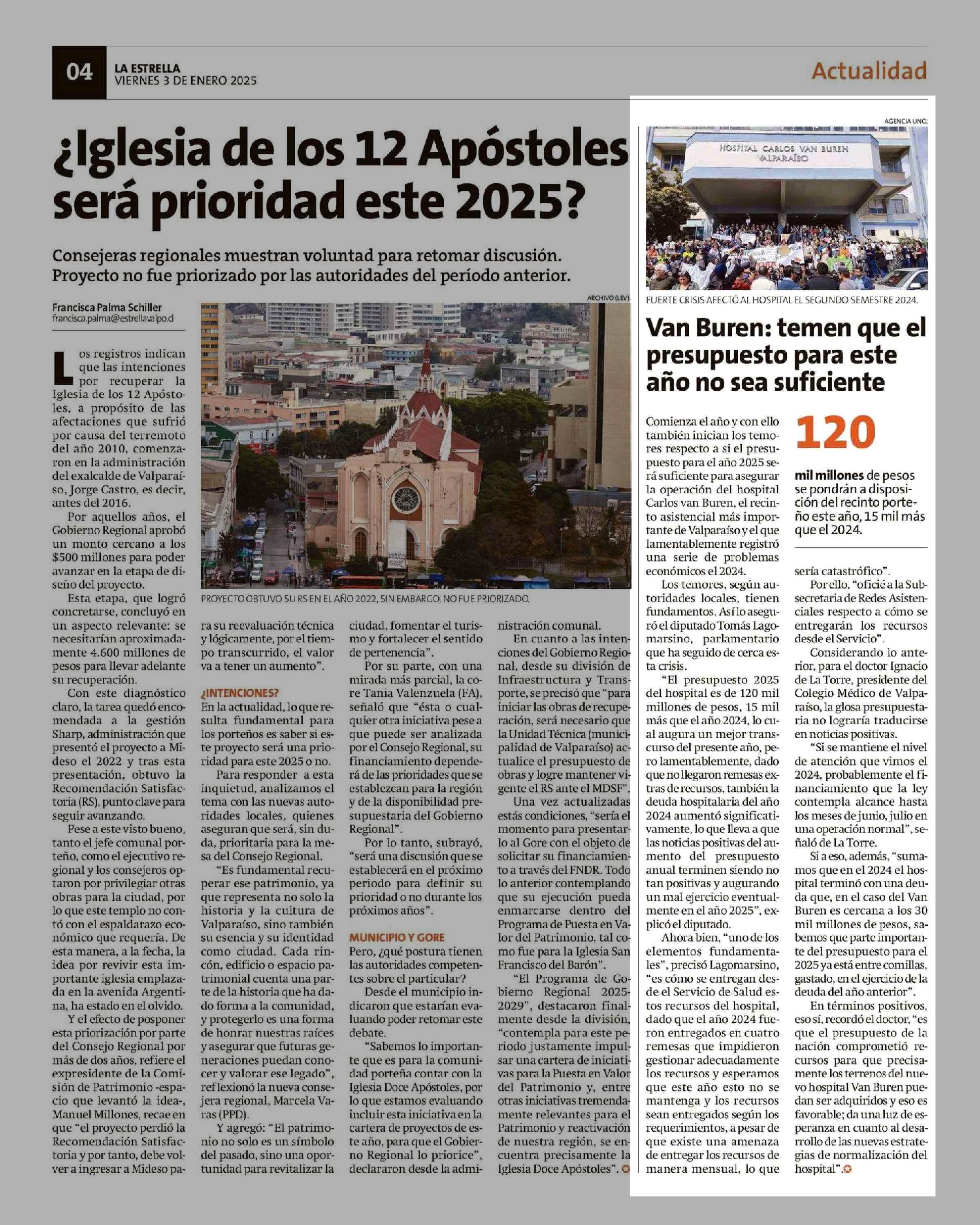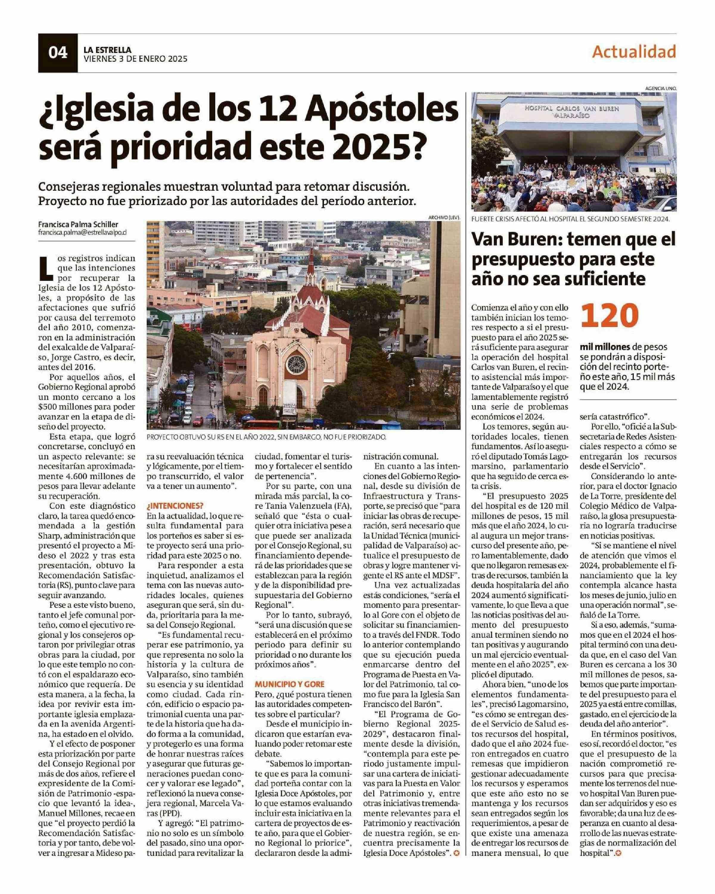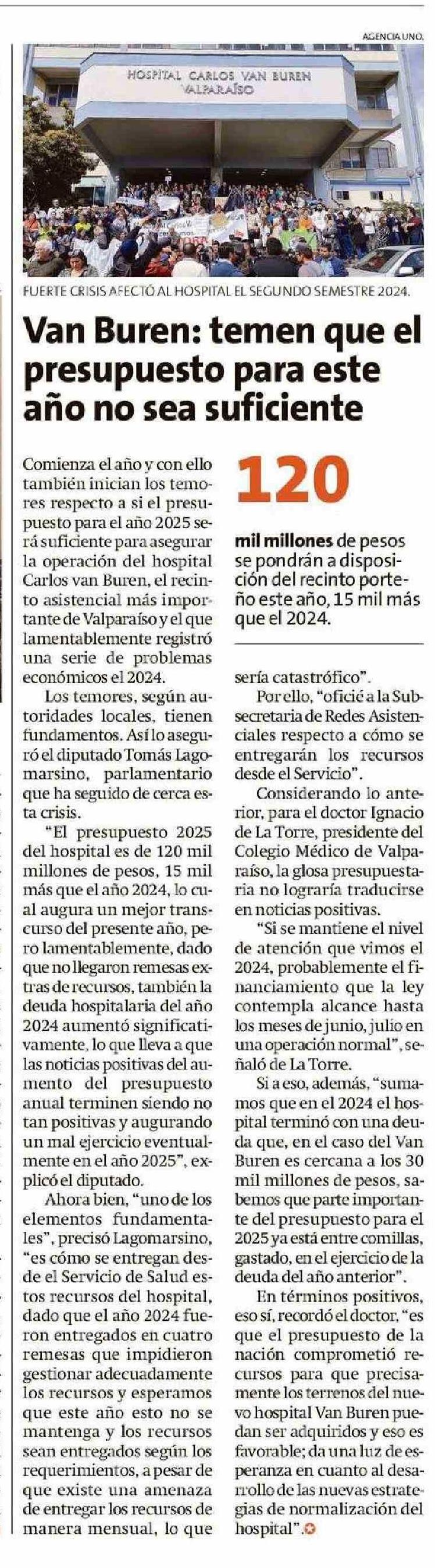 Van Buren: temen que el año no sea suficiente presupuesto para este 03-01-2025 La Estrella de Valparaíso |