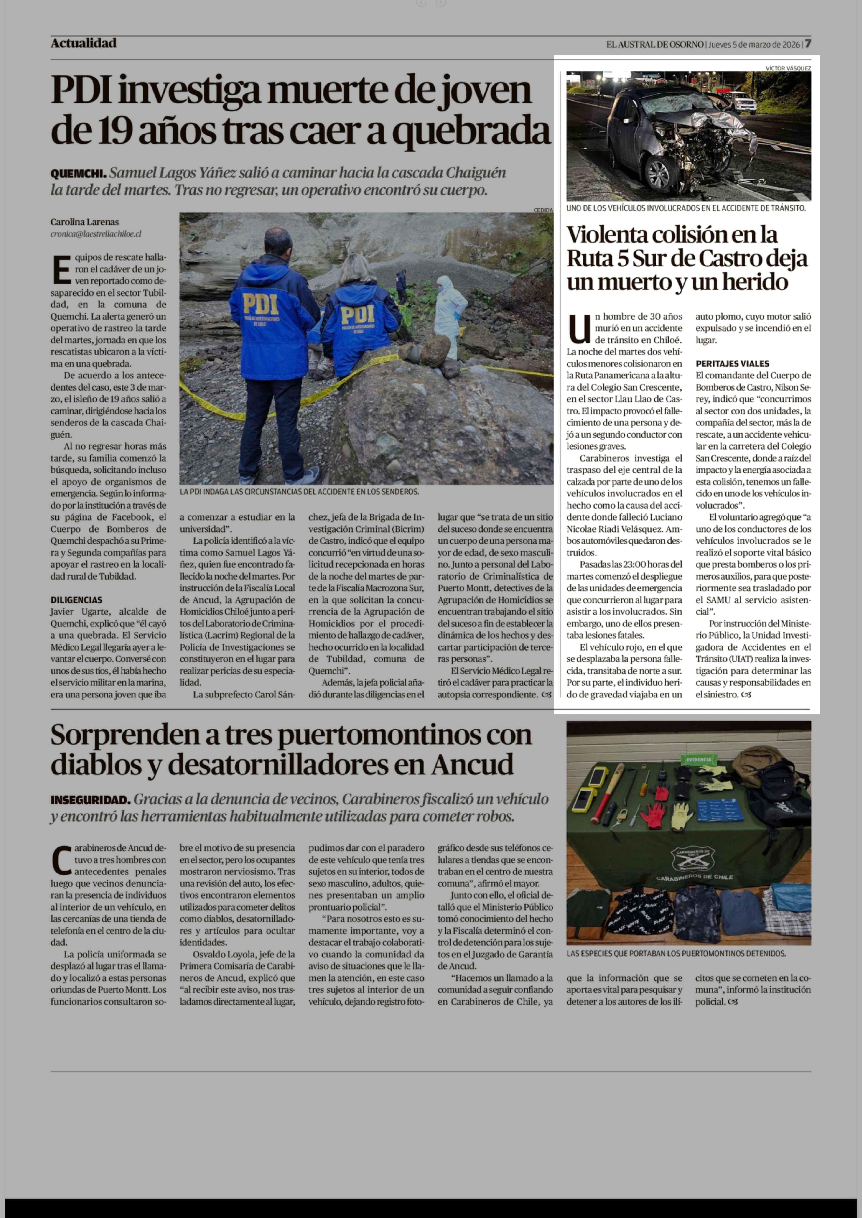 | Fecha: | 05-03-2026 | Sector: | Noticia general | Región: | Región de Los Lagos |