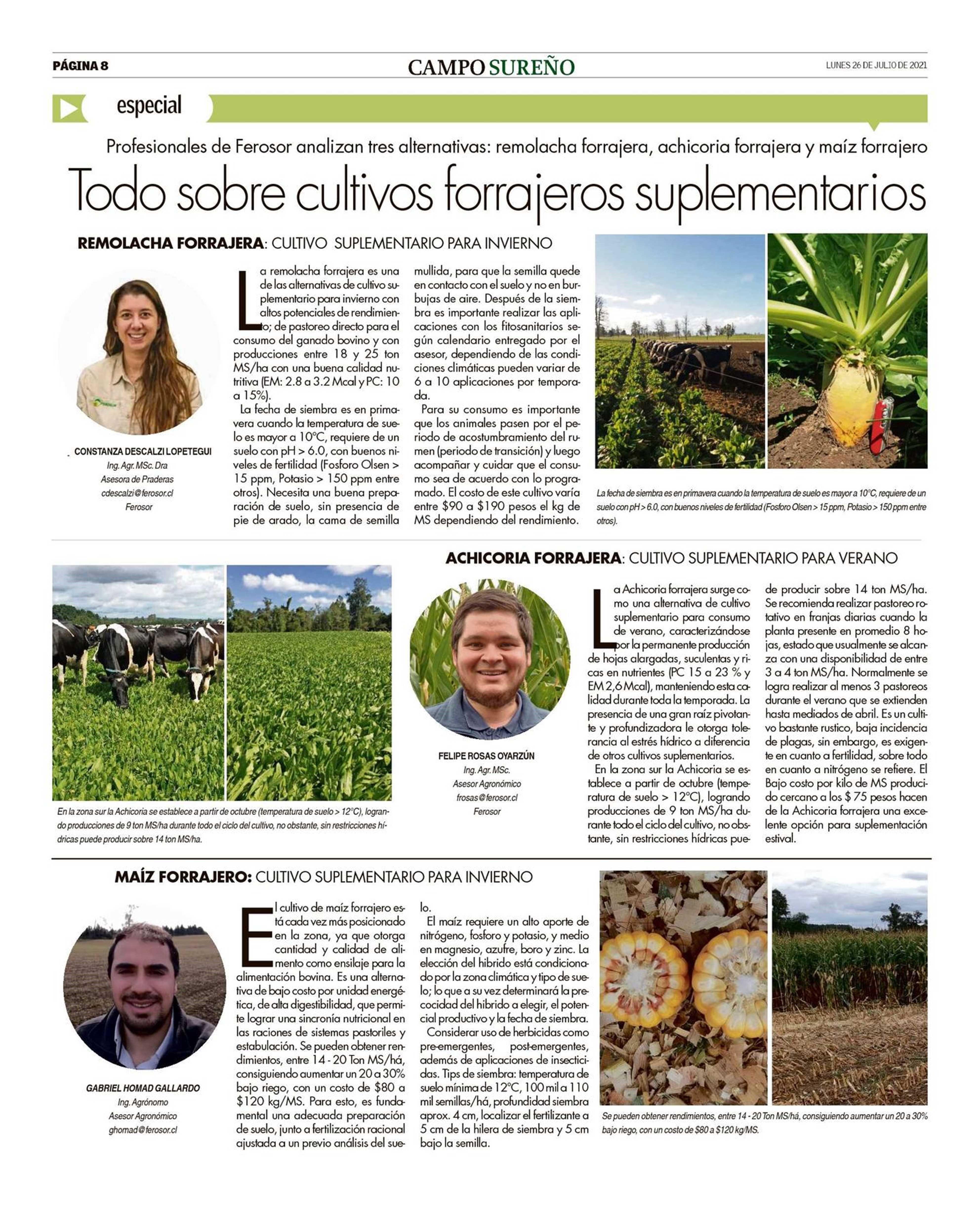 Todo sobre cultivos forrajeros suplementarios 26-07-2021 Campo Sureño - Regiones IX, X y XIV |