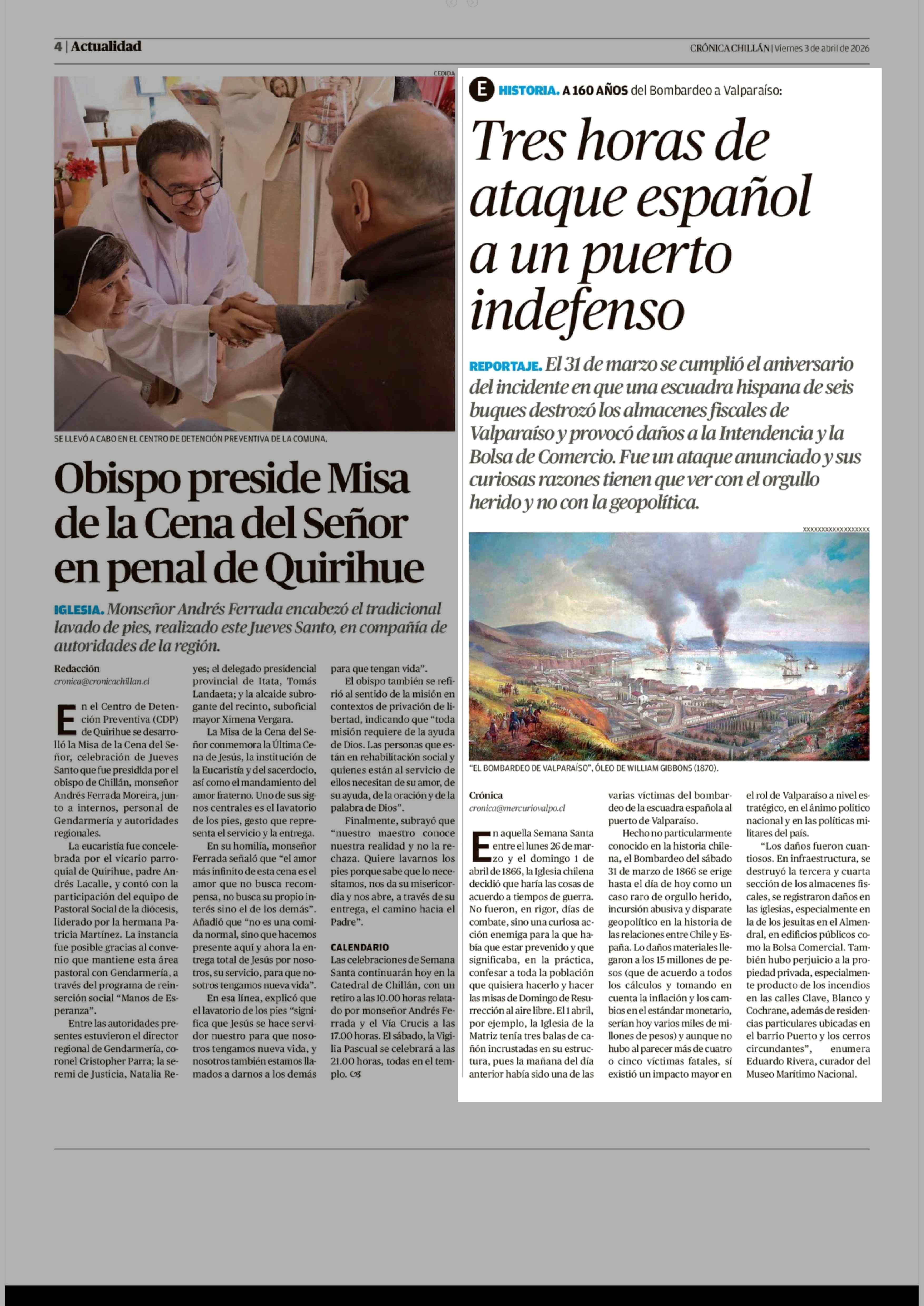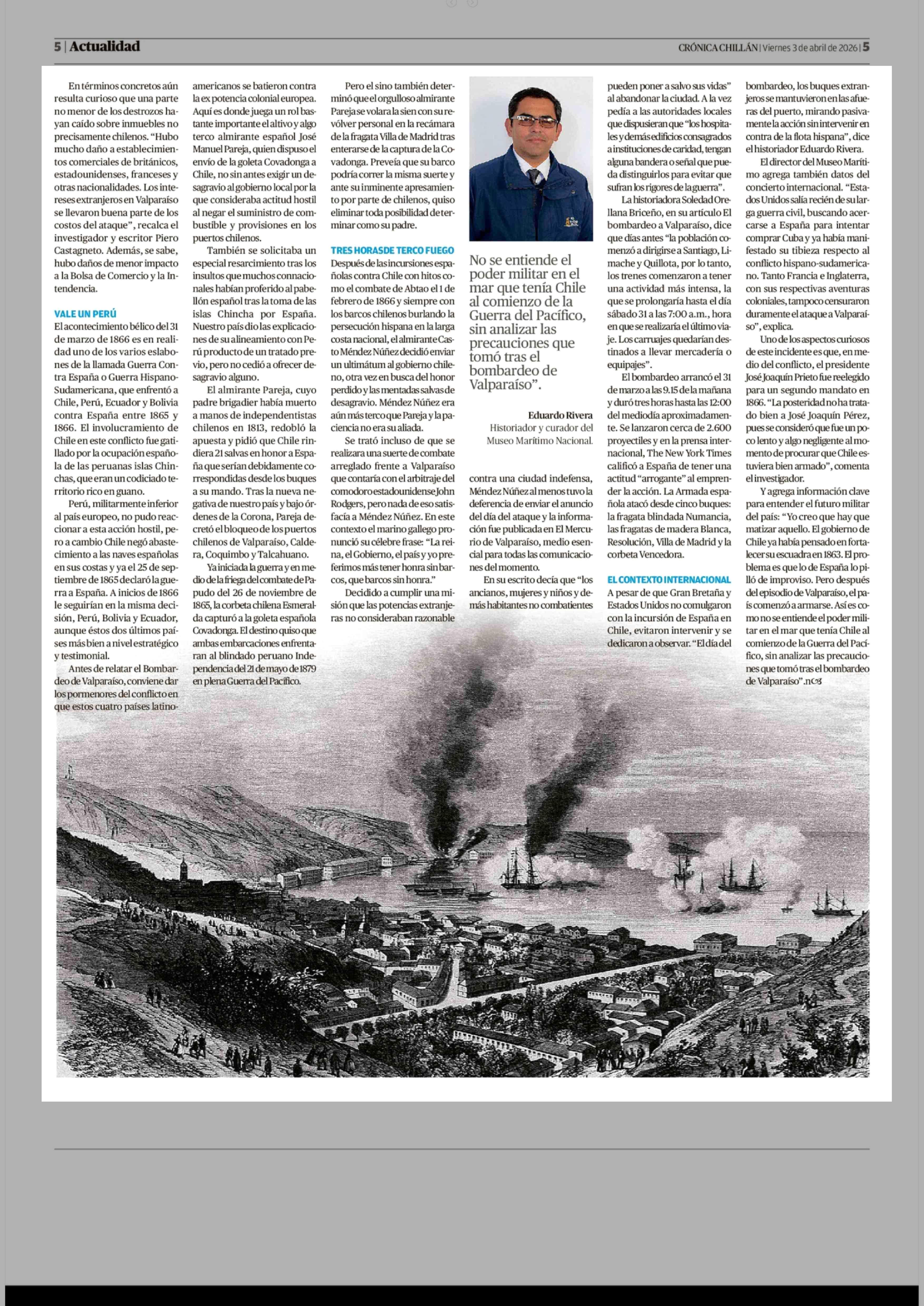 Tres horas de ataque español a un puerto indefenso 03-04-2026 Crónica de Chillán |