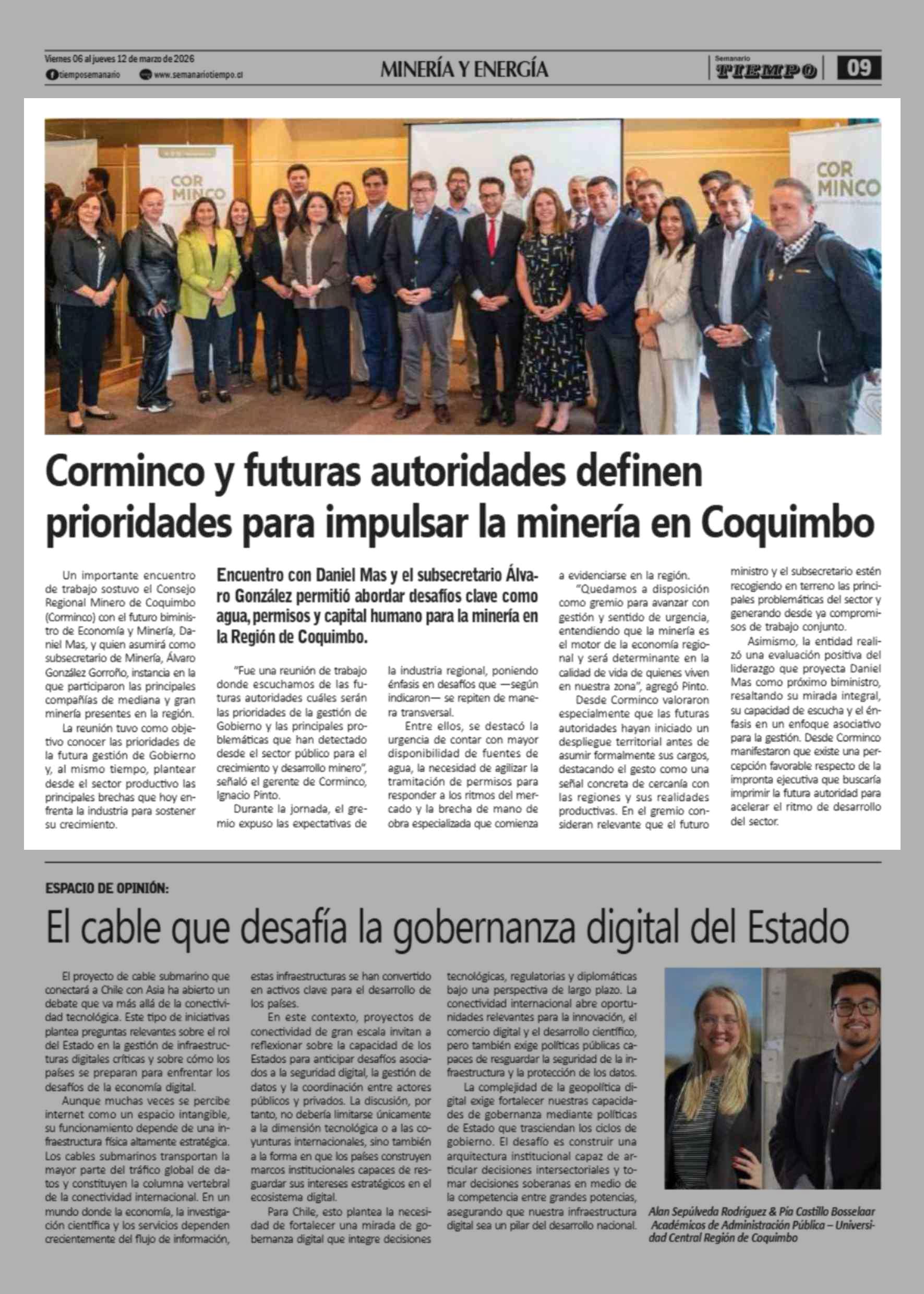 Corminco y futuras autoridades definen prioridades para impulsar la minería en Coquimbo 06-03-2026 Semanario Tiempo |