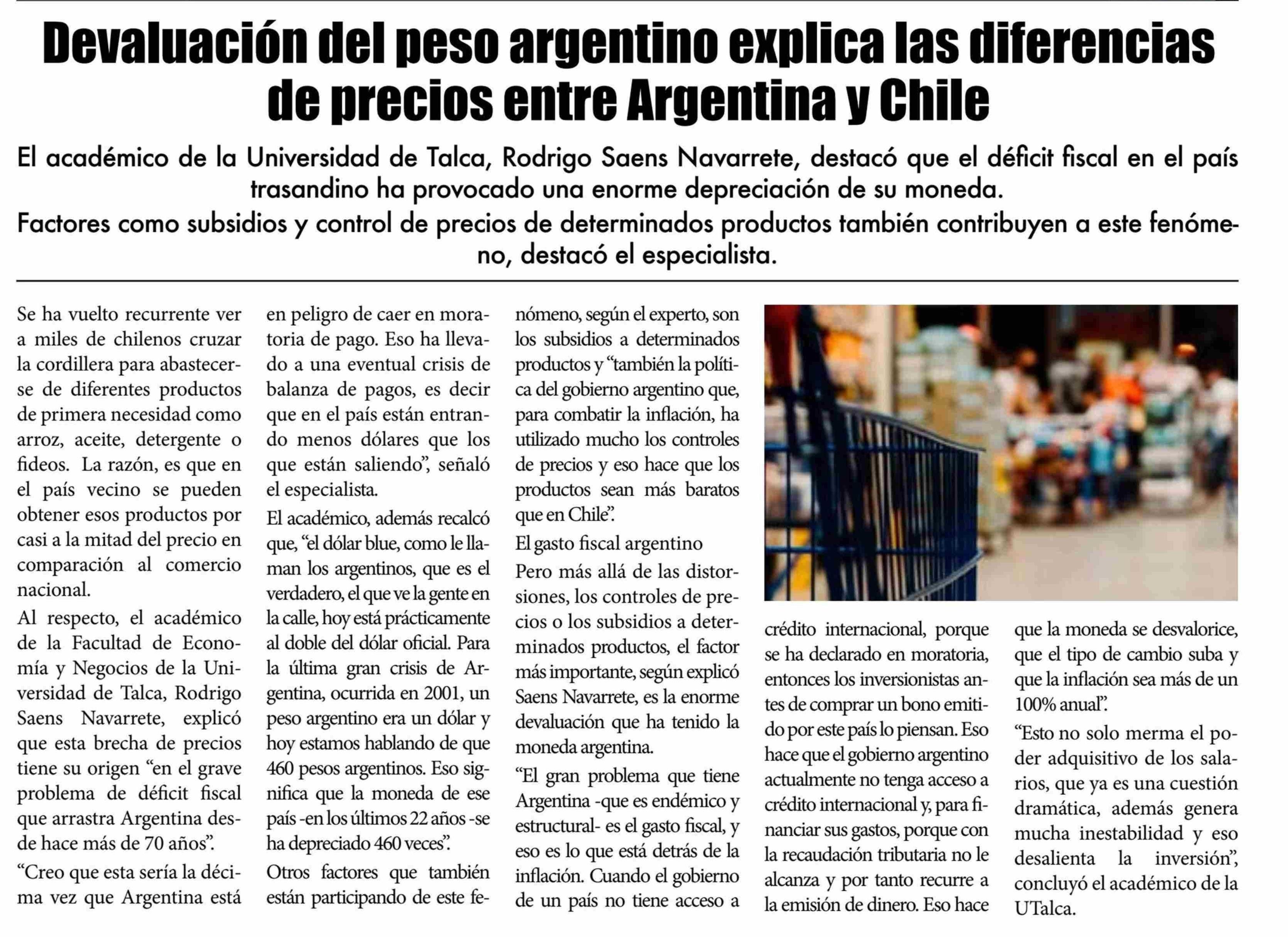 | Título: | Devaluación del peso argentino explica las diferencias de precios entre Argentina y Chile |