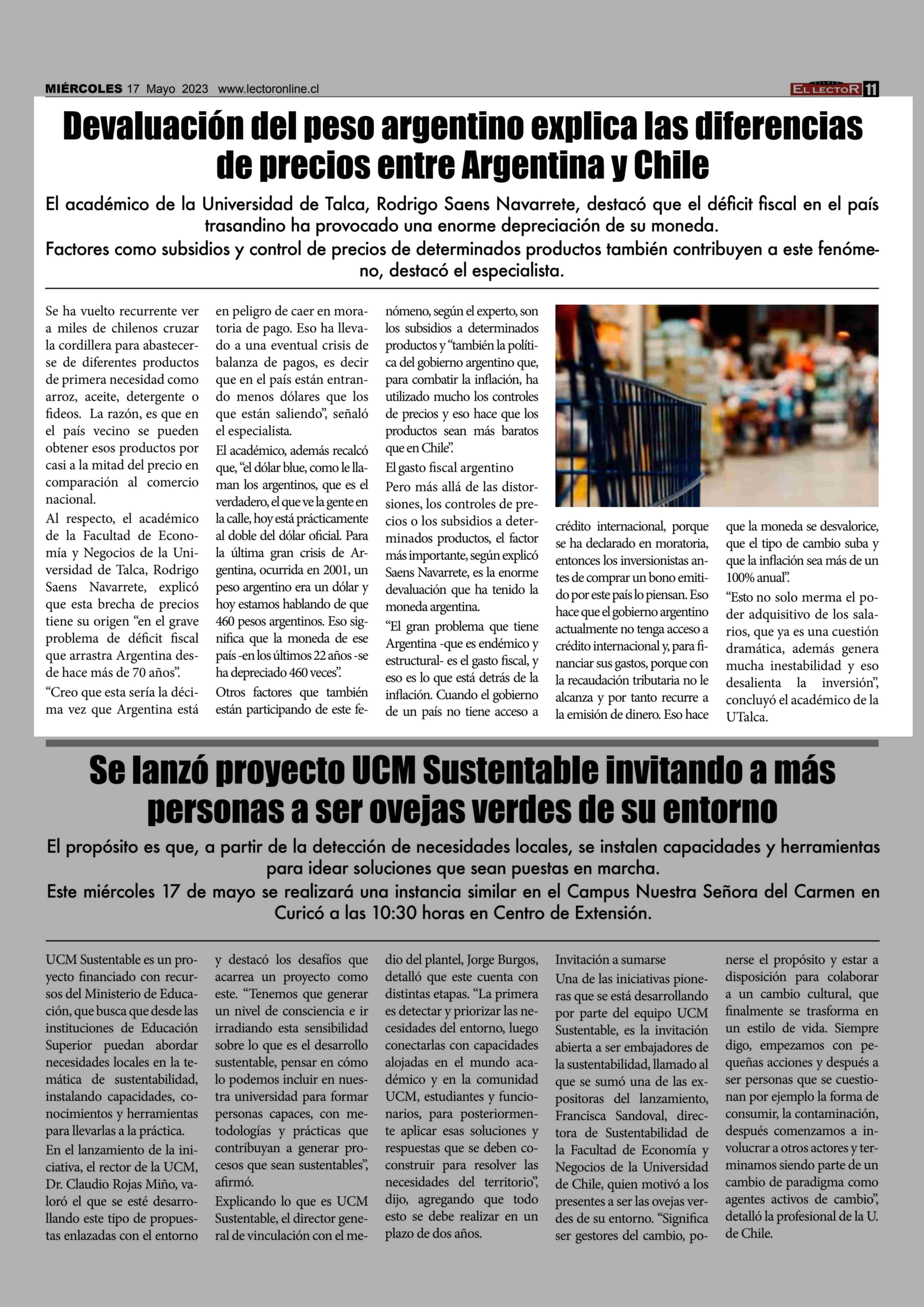 Devaluación del peso argentino explica las diferencias de precios entre Argentina y Chile 17-05-2023 El Lector |