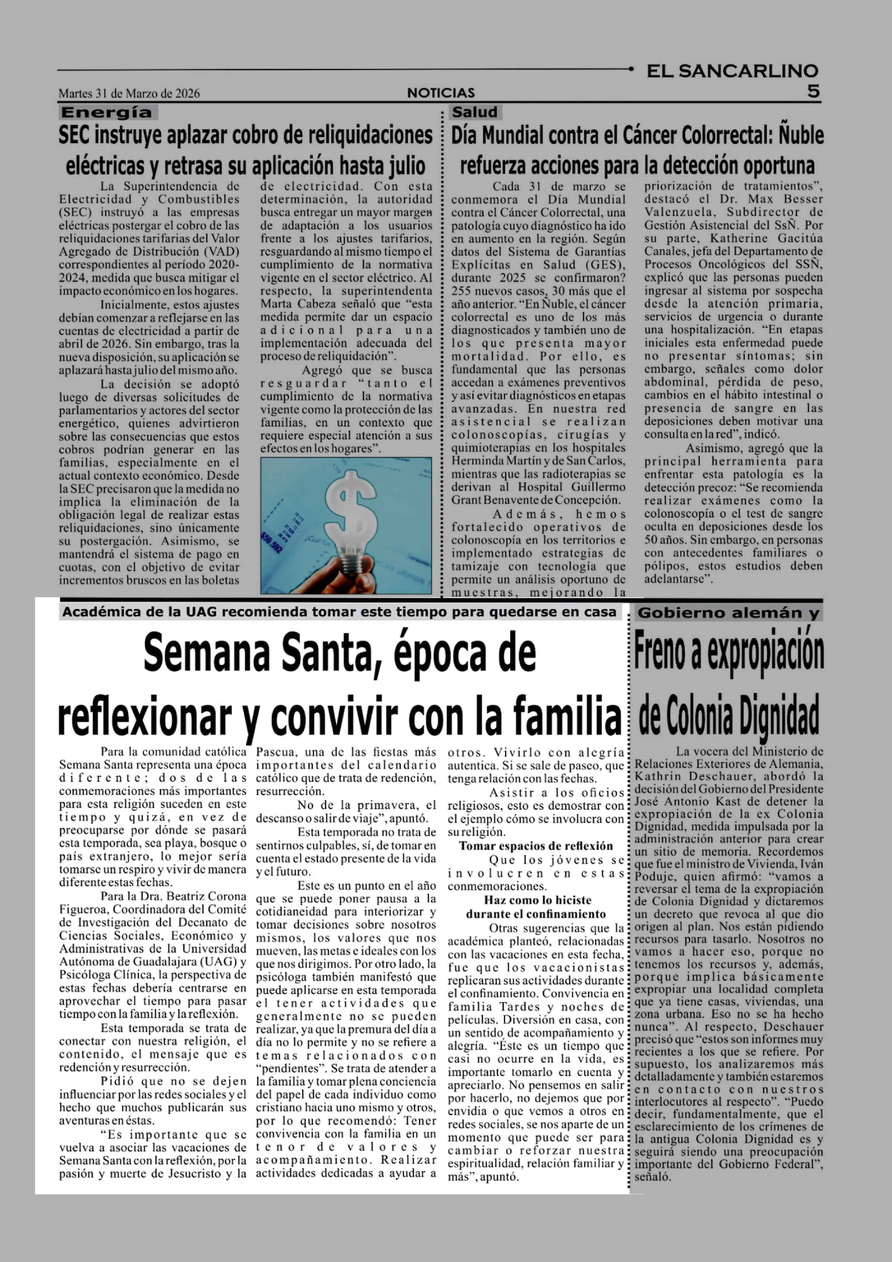 Fecha: 31-03-2026 Sector: Noticia general Región: Región del Ñuble