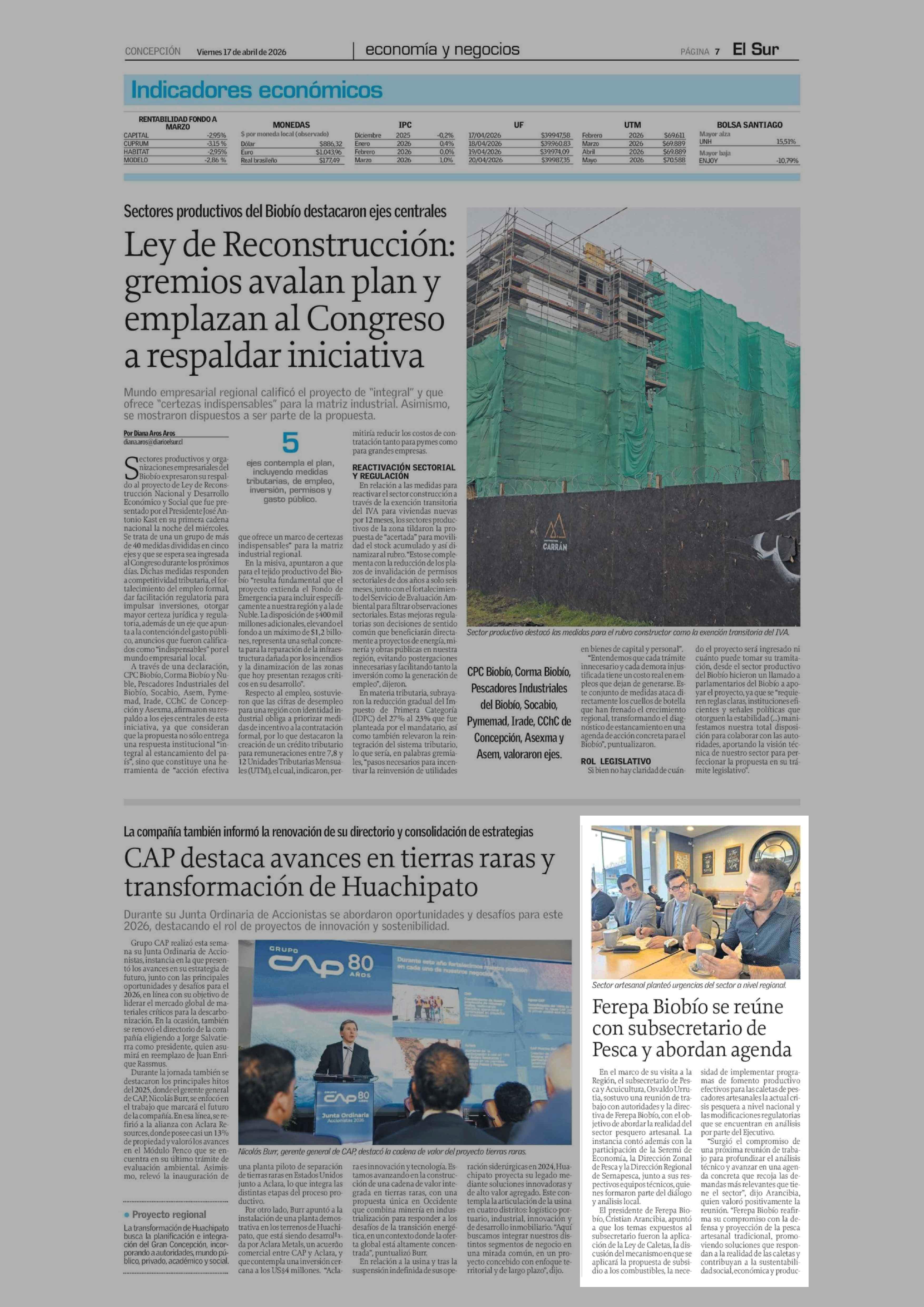 Ferepa Biobío se reúne con subsecretario de Pesca y abordan agenda 17-04-2026 El Sur |