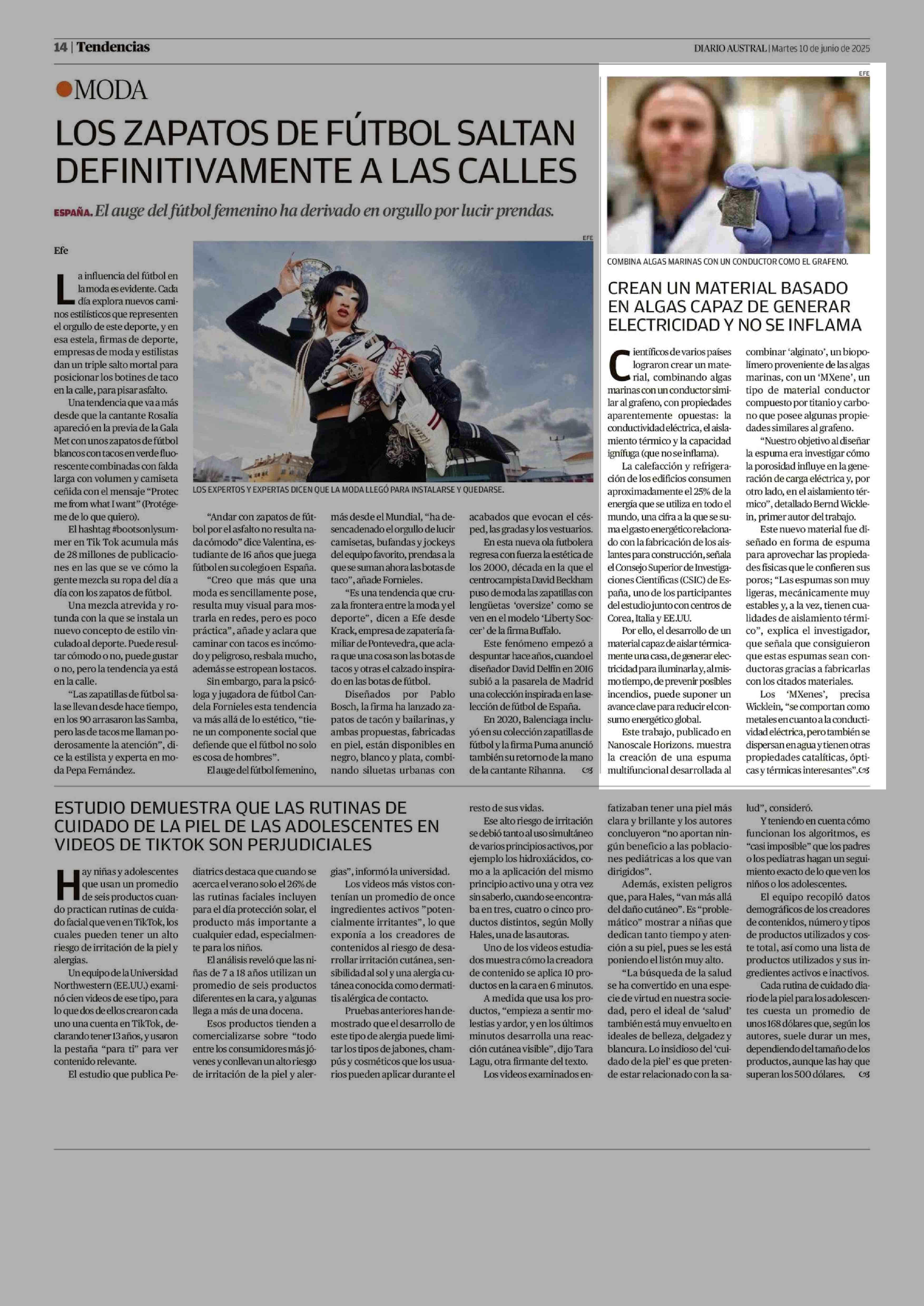 CREAN UN MATERIAL BASADO EN ALGAS CAPAZ DE GENERAR ELECTRICIDAD Y NO SE INFLAMA 10-06-2025 Diario Austral Región de Los Ríos |
