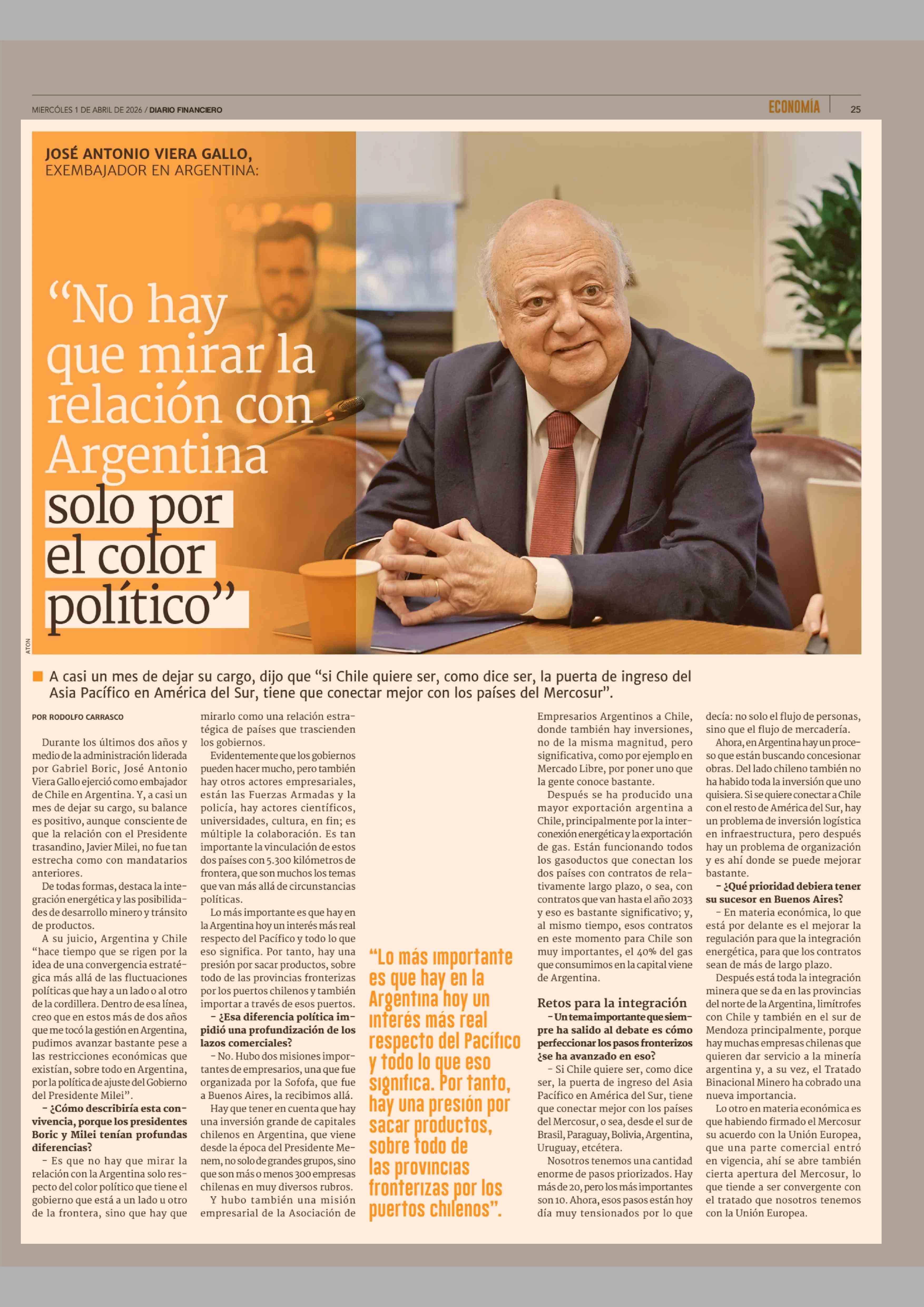Título: "No hay que mirar la relación con Argentina solo por el color político"