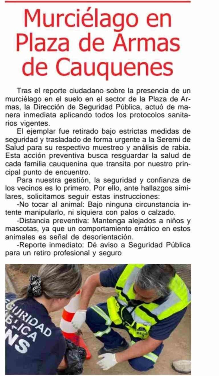 Título: Murciélago en Plaza de Armas de Cauquenes