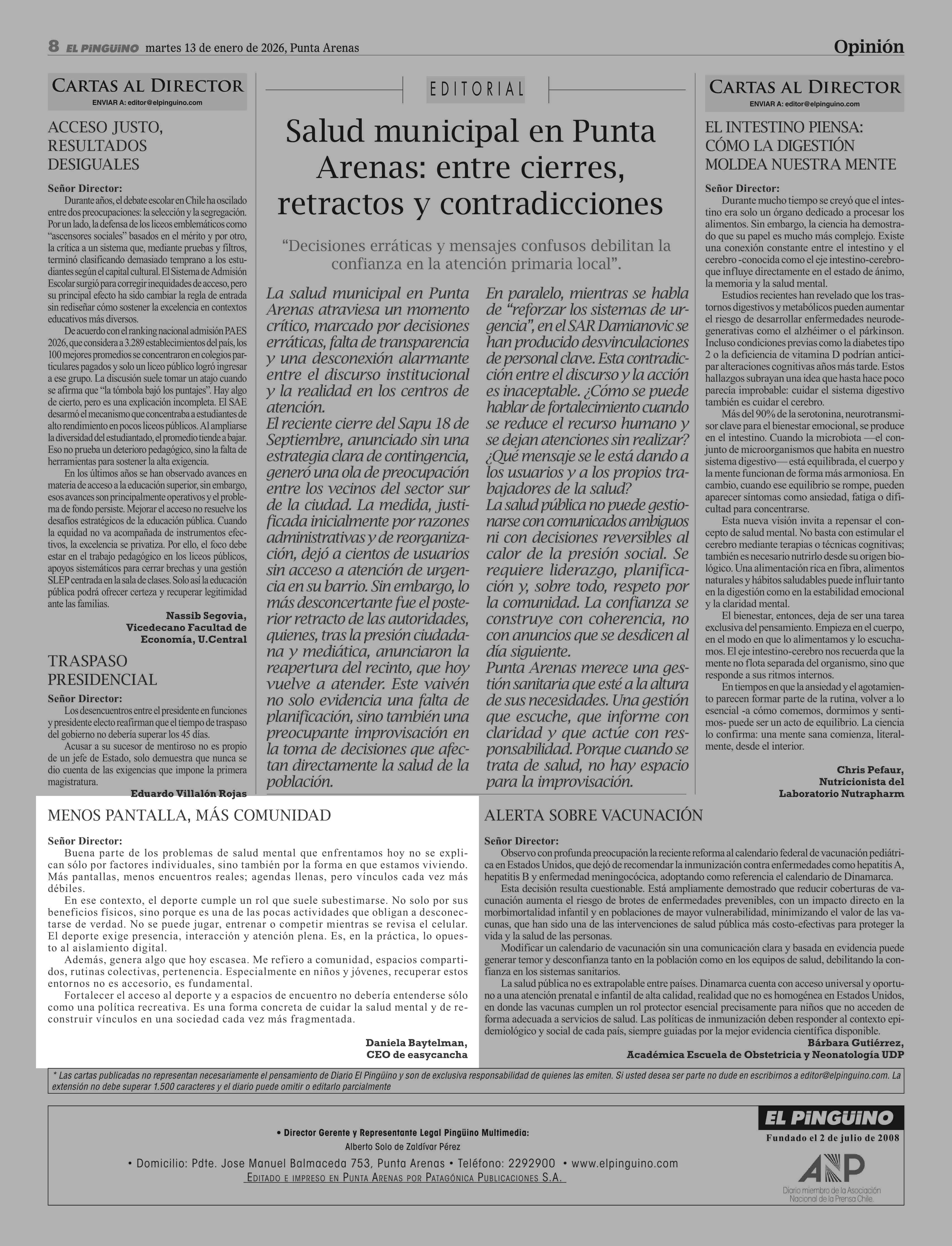 Cartas: MENOS PANTALLA, MÁS COMUNIDAD 13-01-2026 El Pingüino |