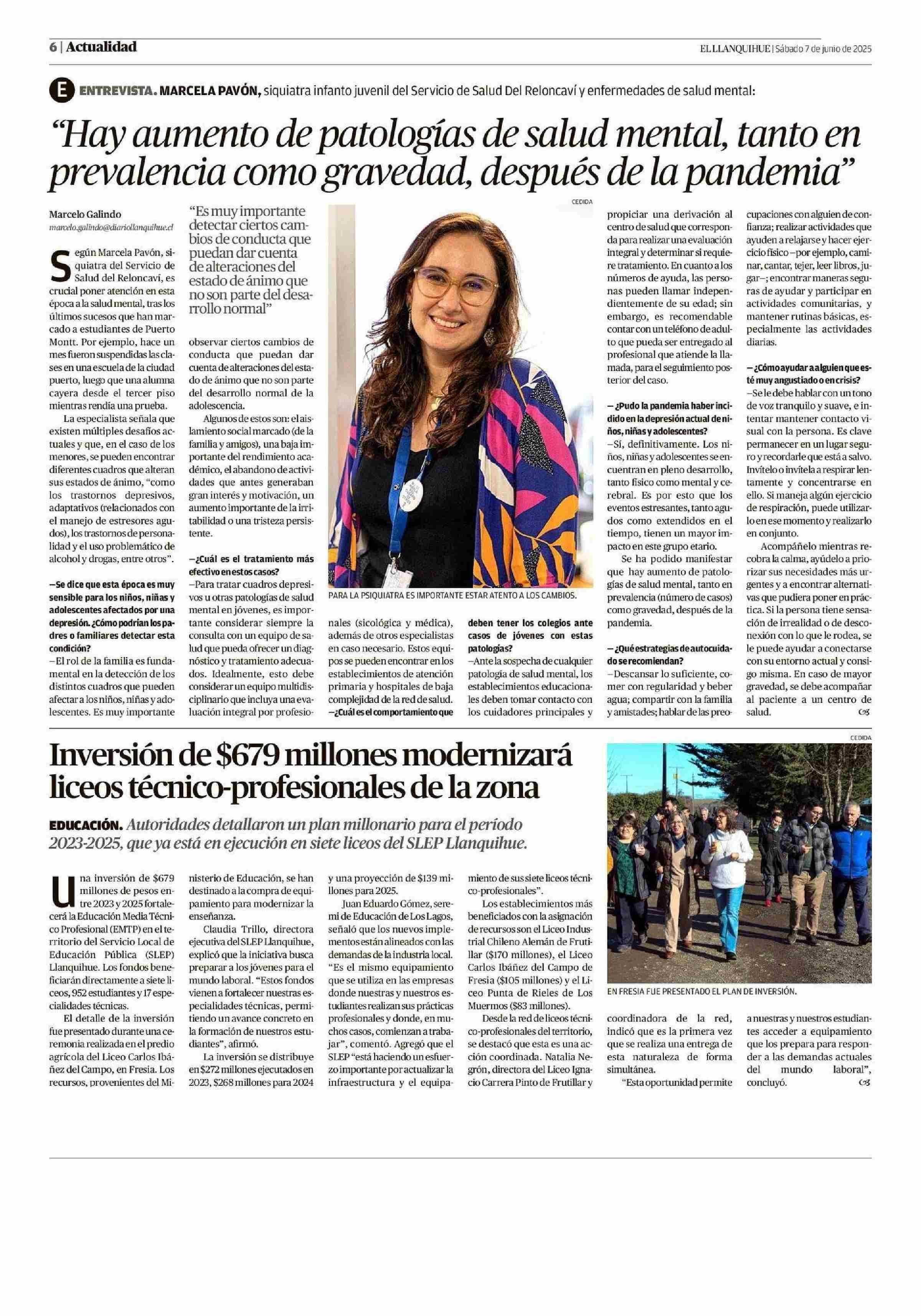 “Hay aumento de patologías de salud mental, tanto en prevalencia como gravedad, después de la pandemia” 07-06-2025 El Llanquihue |
