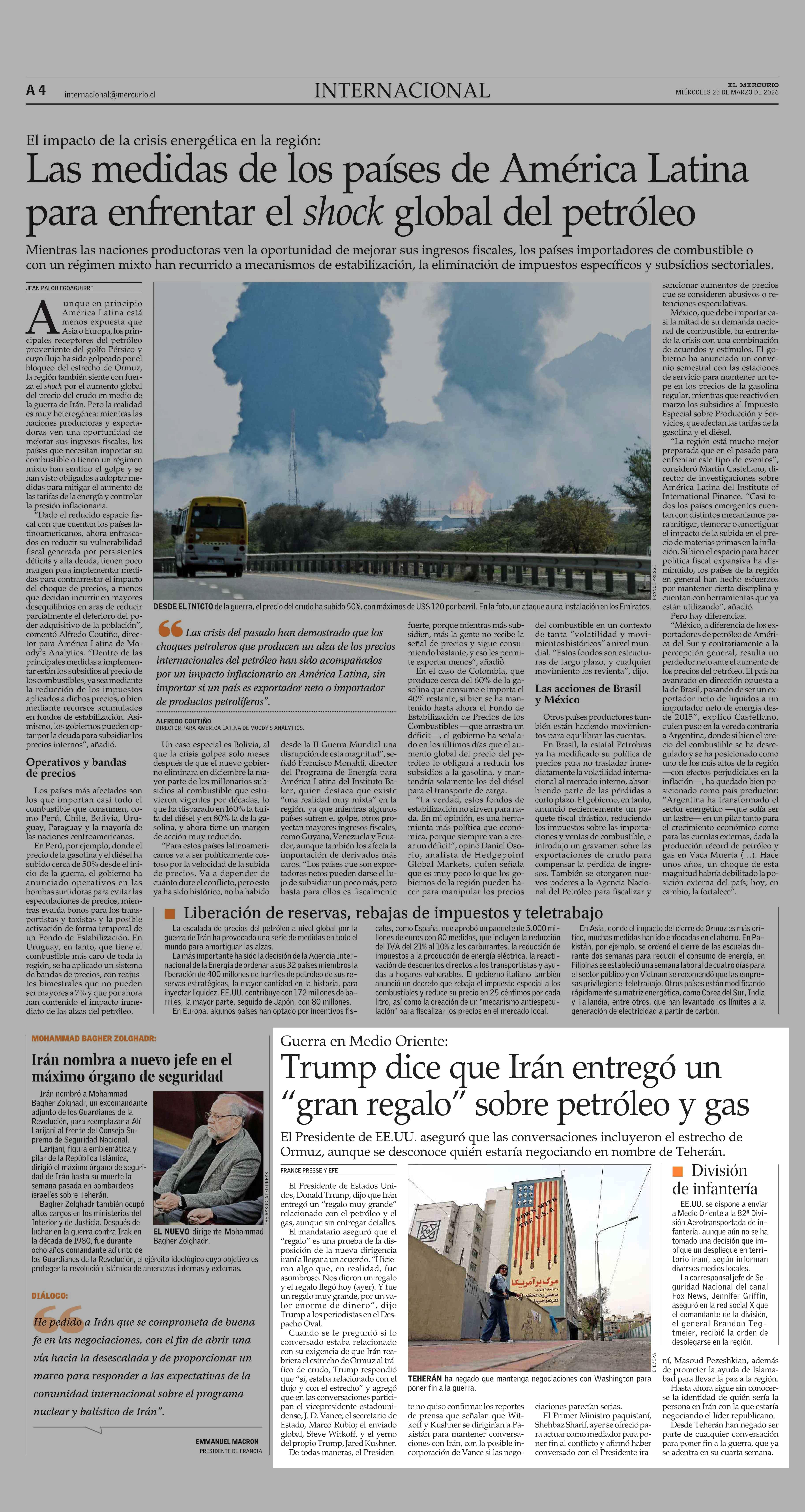 Trump dice que Irán entregó un “gran regalo” sobre petróleo y gas 25-03-2026 El Mercurio |