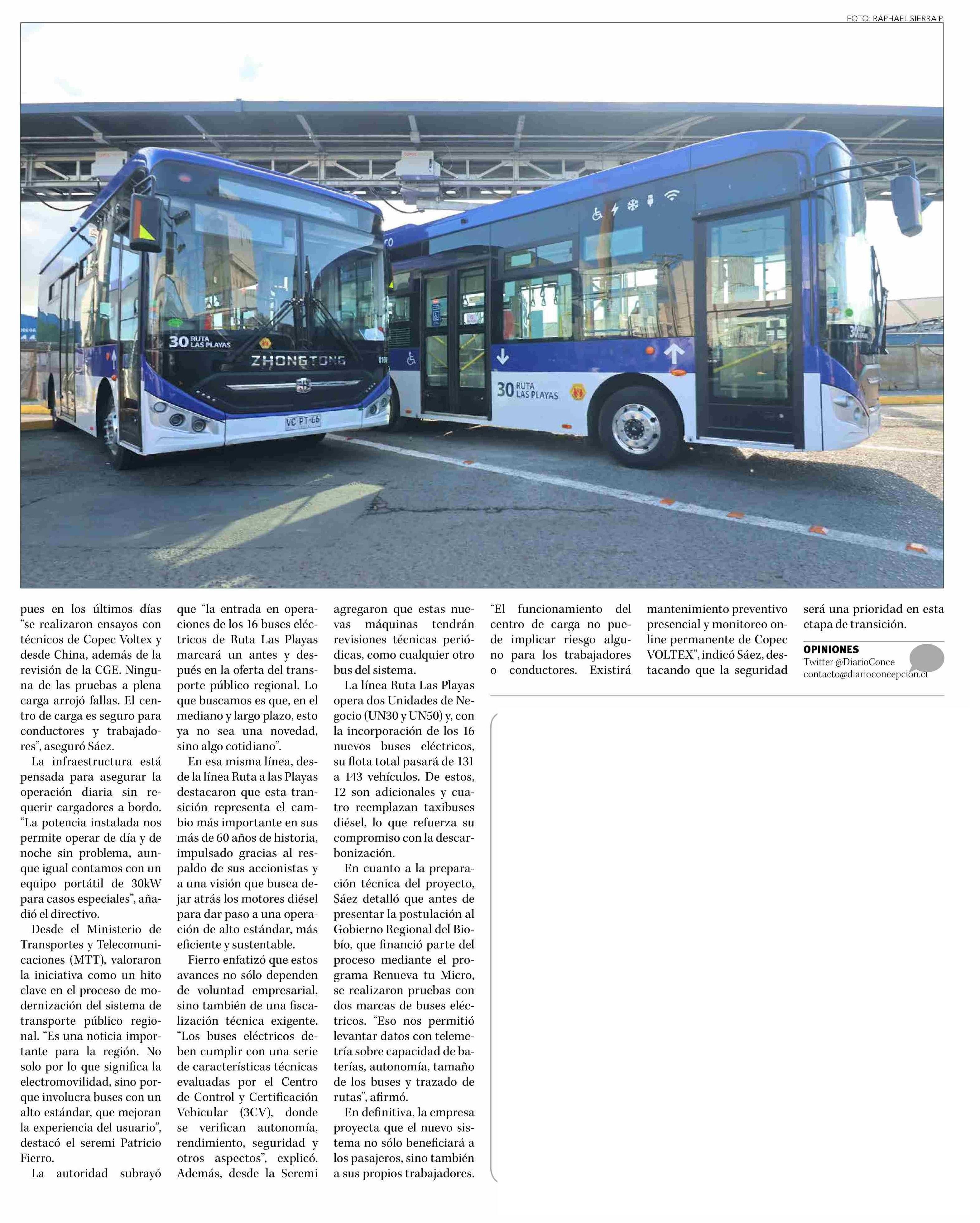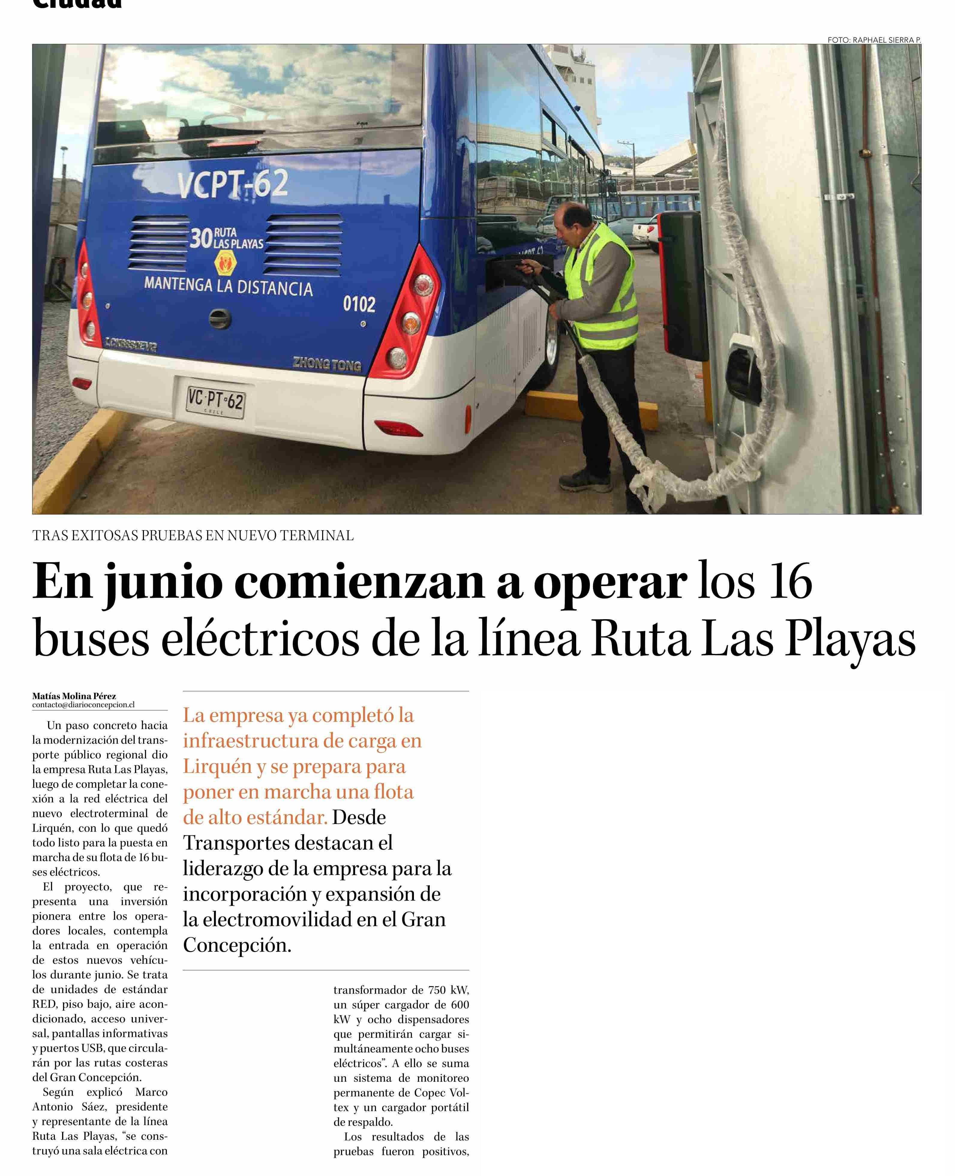 En junio comienzan a operar los 16 buses eléctricos de la línea Ruta Las Playas 26-05-2025 Diario Concepción |