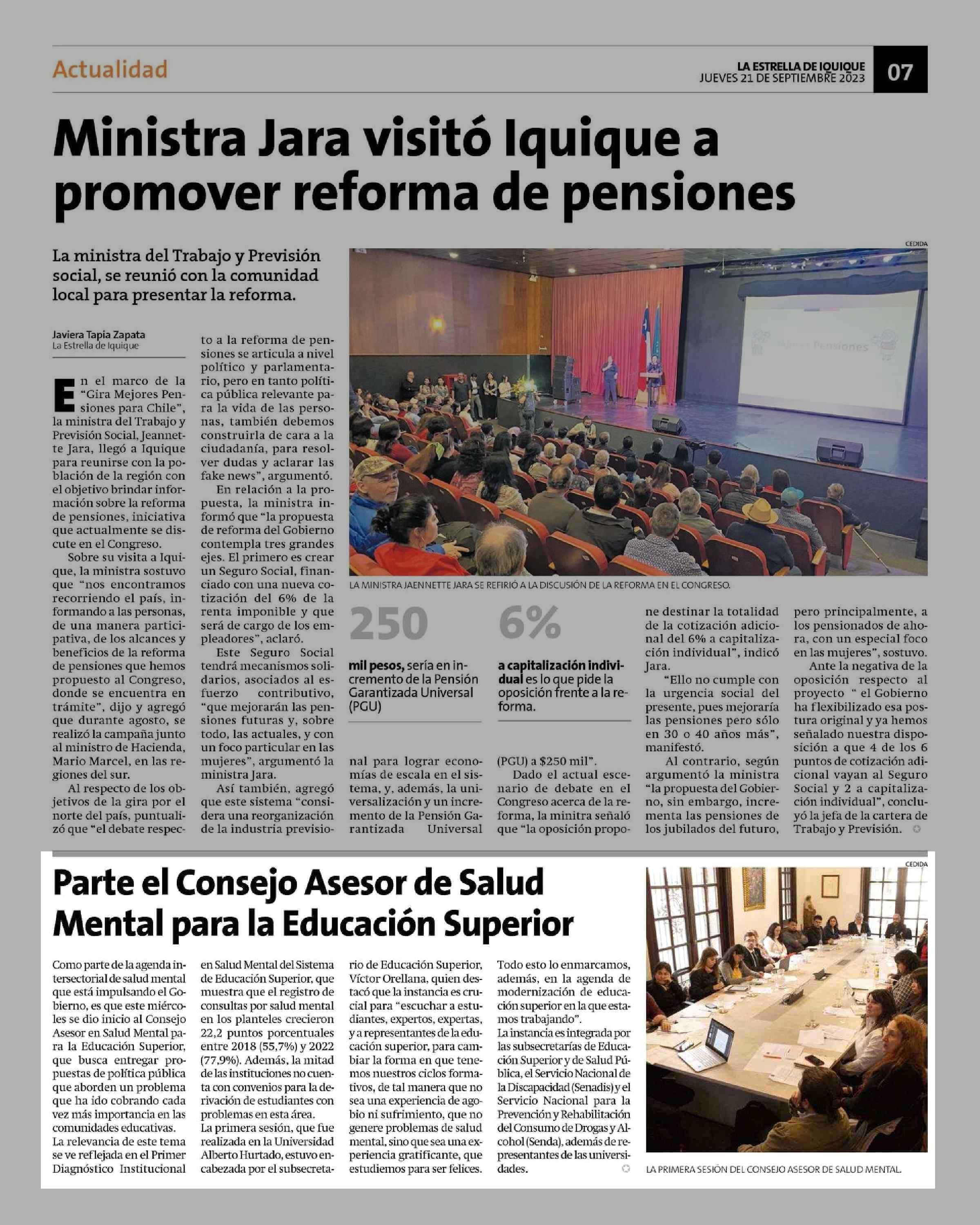 Parte el Consejo Asesor de Salud Mental para la Educación Superior 21-09-2023 La Estrella de Iquique |