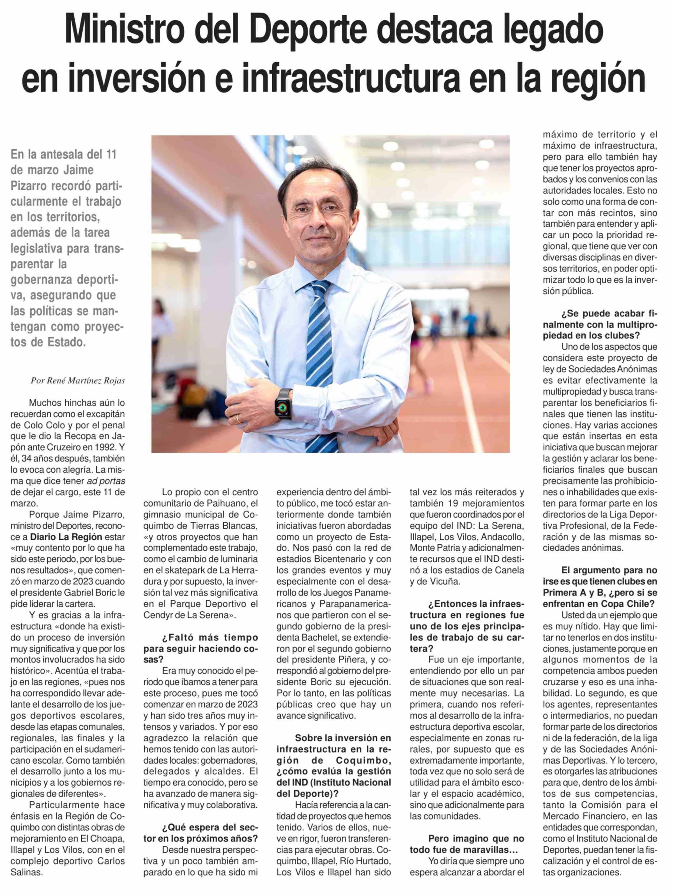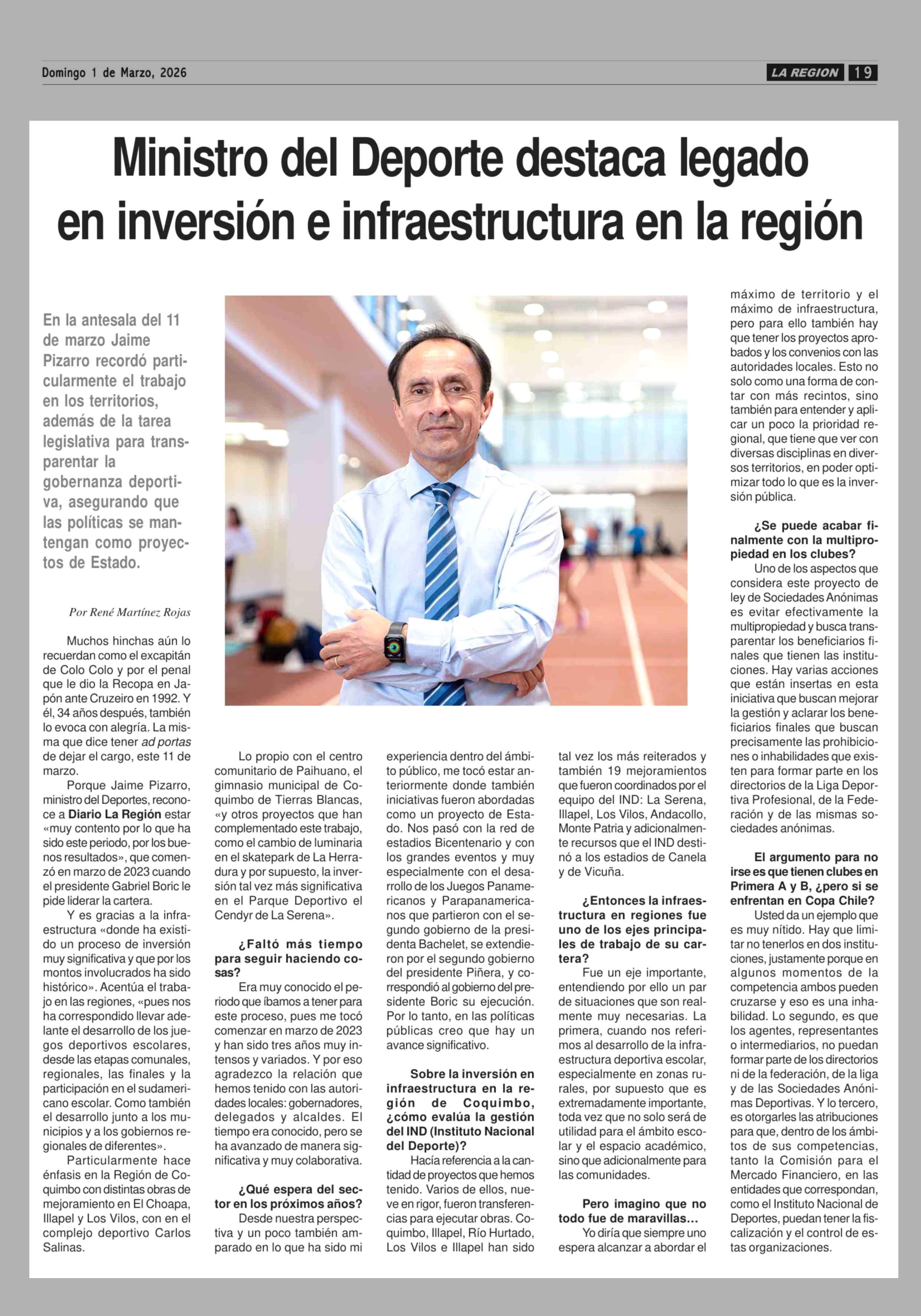 Ministro del Deporte destaca legado en inversión e infraestructura en la región 01-03-2026 Diario la Región |