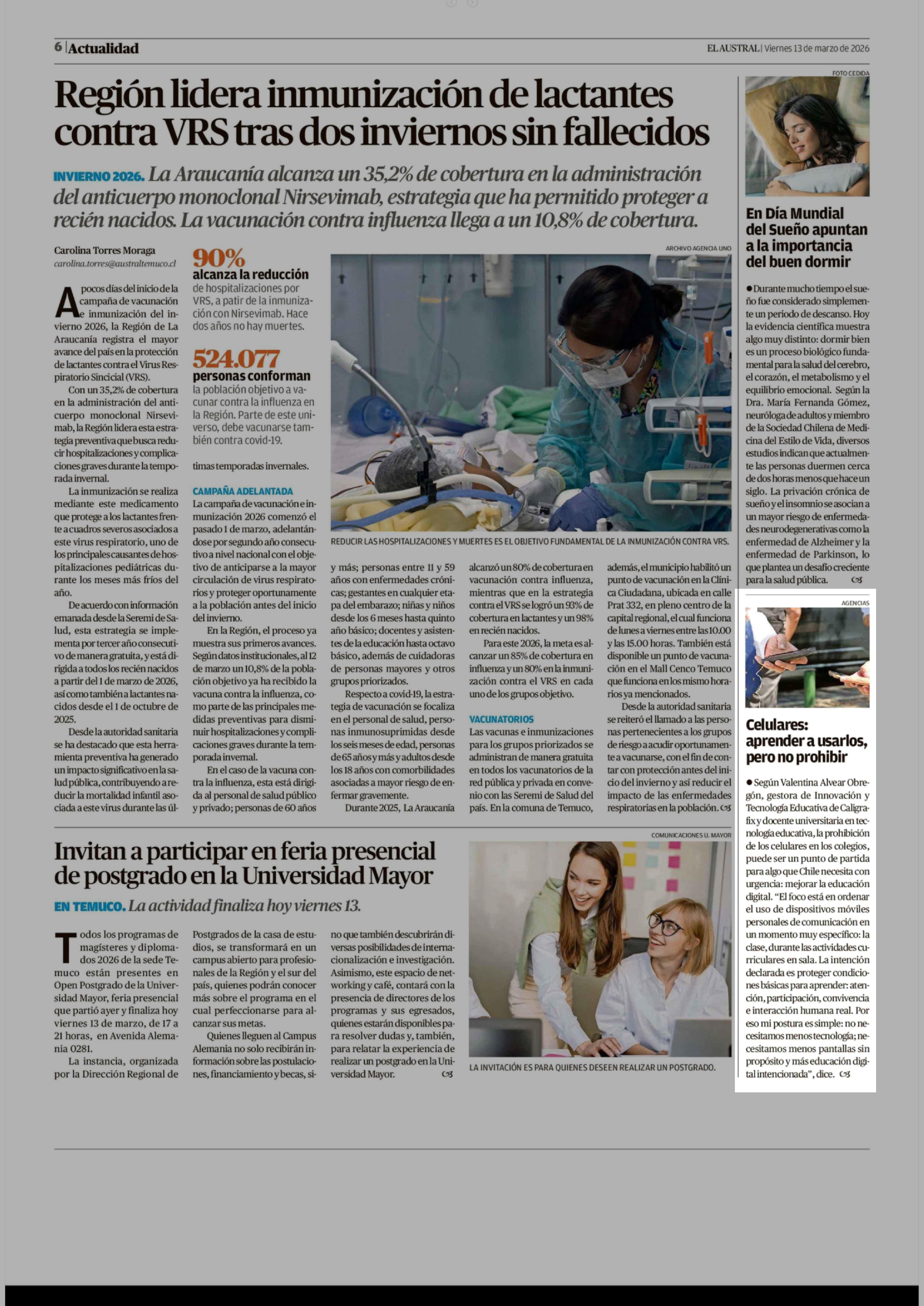 Celulares: aprender a usarlos, pero no prohibir 13-03-2026 El Austral de la Araucanía |