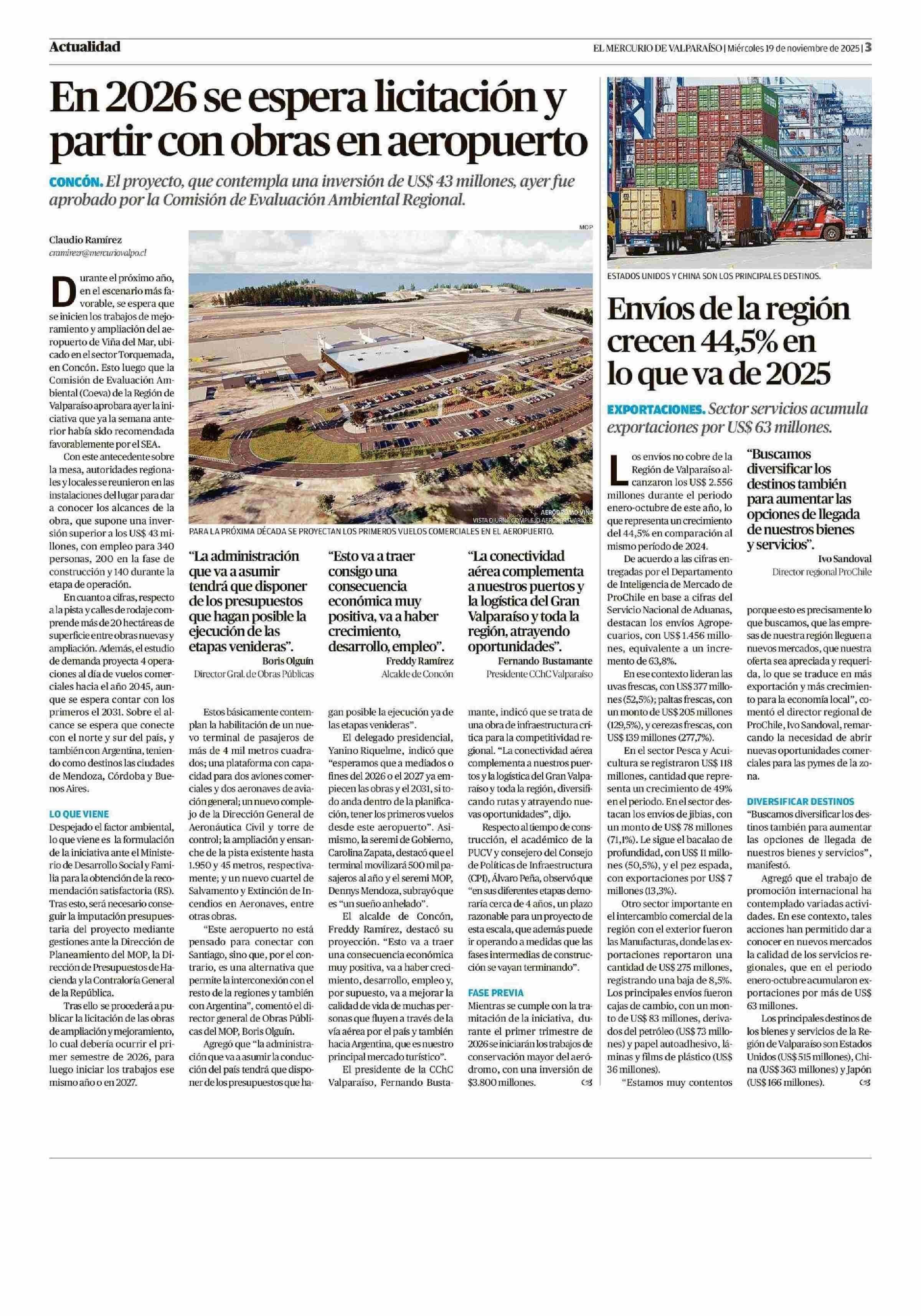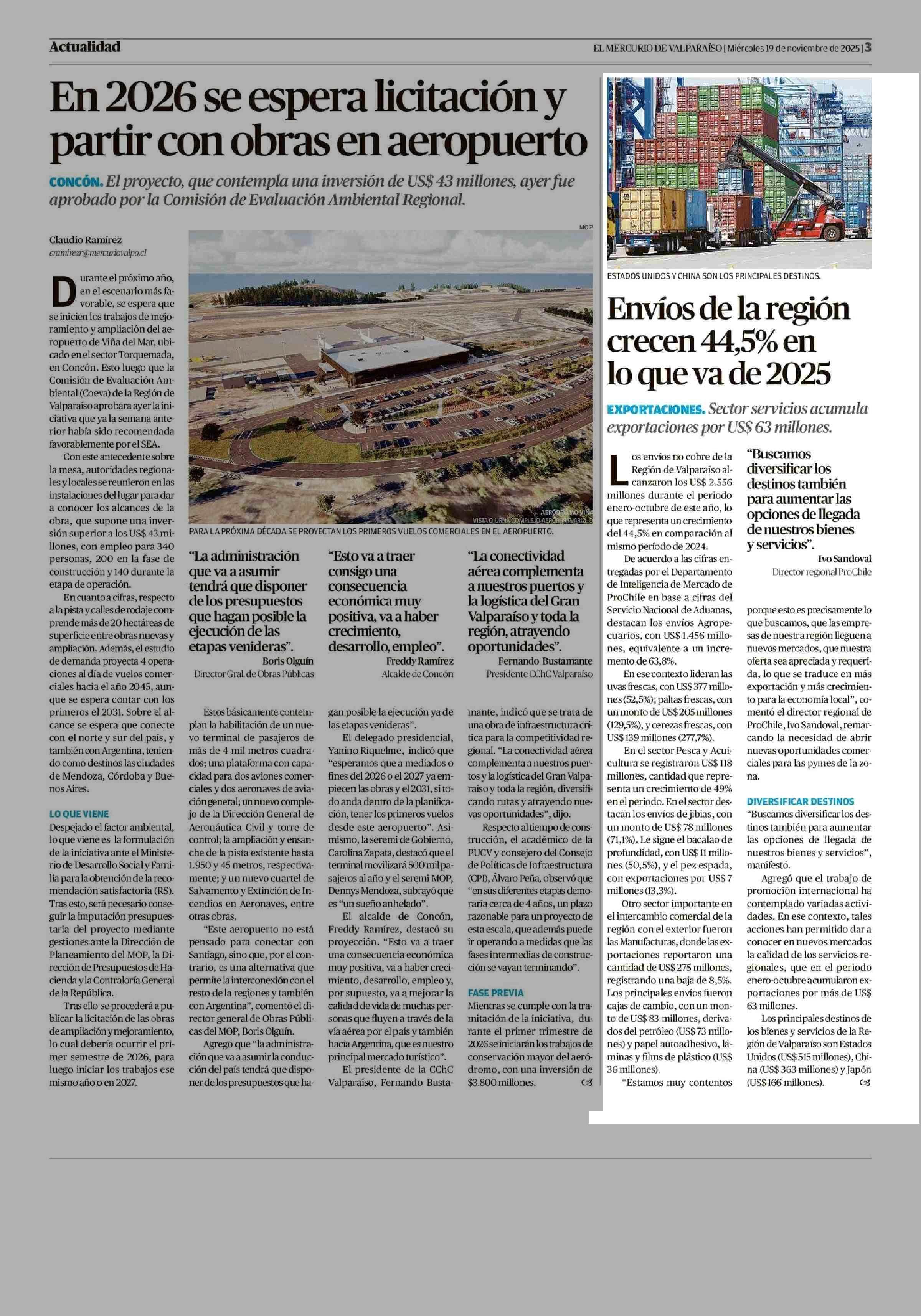 Envíos de la región crecen 44,5% en lo que va de 2025 19-11-2025 El Mercurio de Valparaíso |
