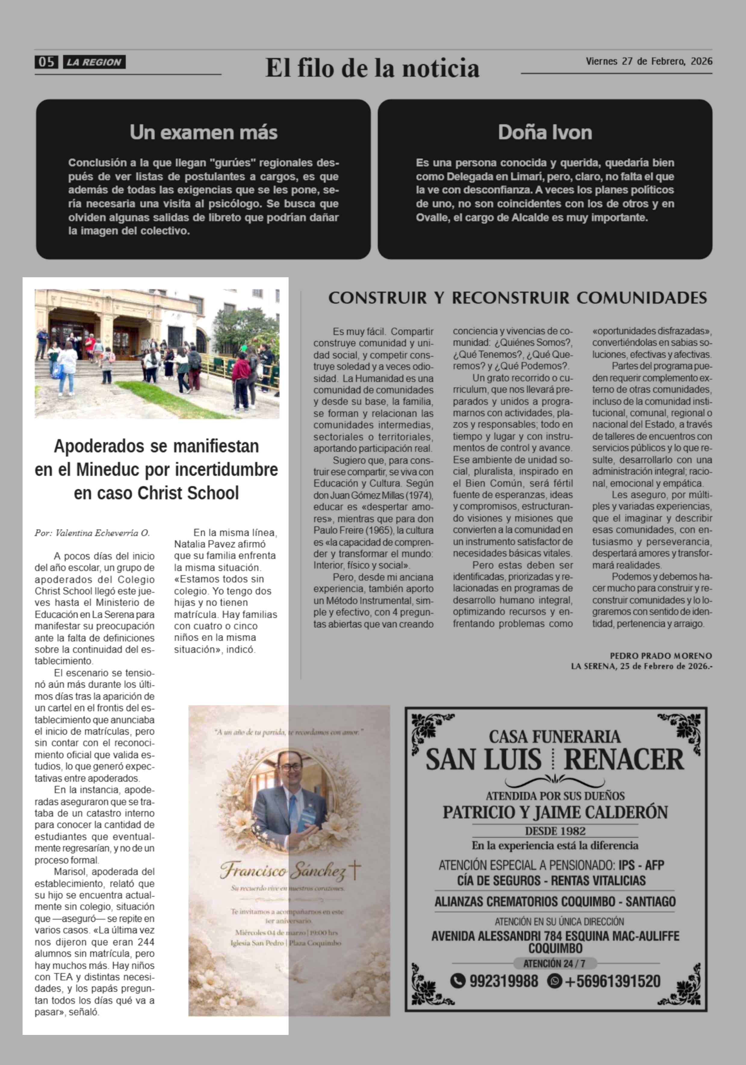 | Fecha: | 27-02-2026 | Sector: | Noticia general | Región: | Región de Coquimbo |