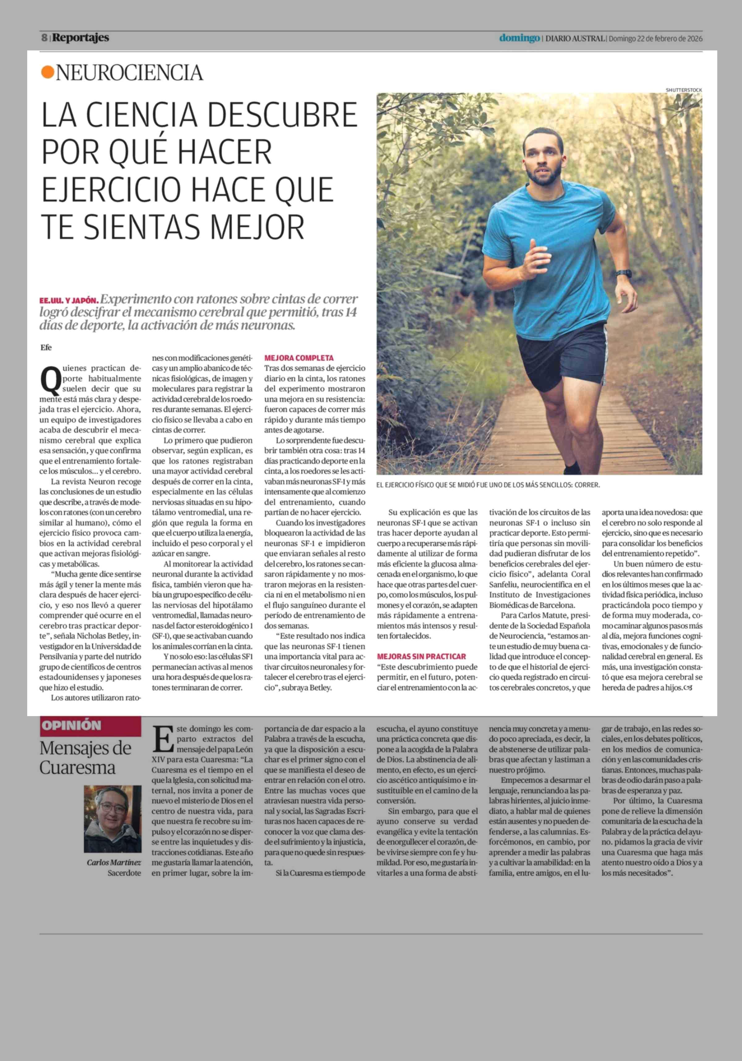 LA CIENCIA DESCUBRE POR QUÉ HACER EJERCICIO HACE QUE TE SIENTAS MEJOR 22-02-2026 Diario Austral Región de Los Ríos |