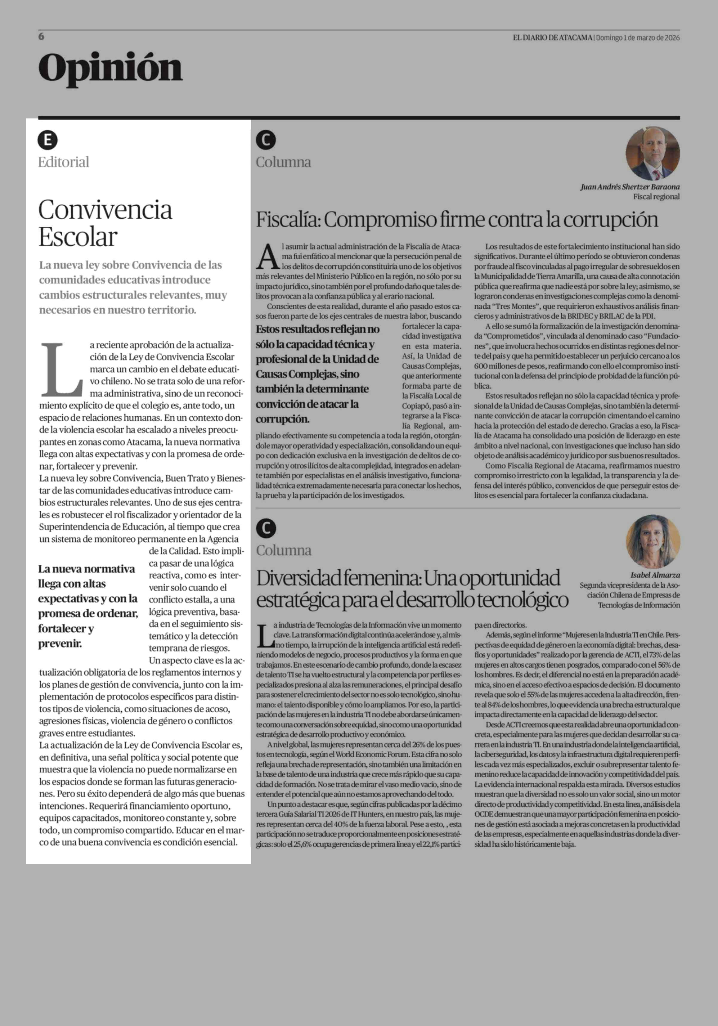 Editorial: Convivencia Escolar 01-03-2026 El Diario de Atacama |