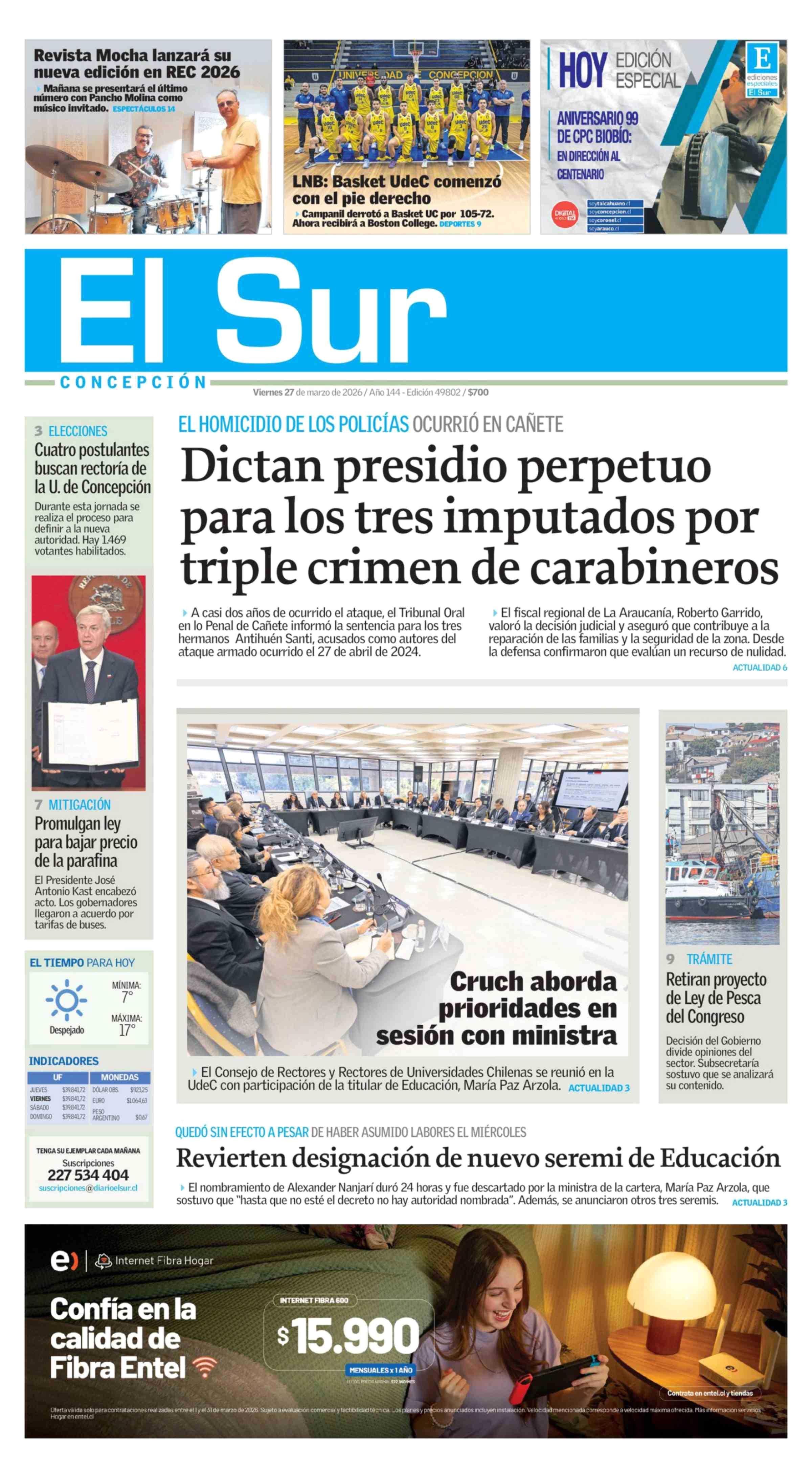 | Fecha: | 27-03-2026 | Sector: | Portada | Región: | Región del Bío-Bío |