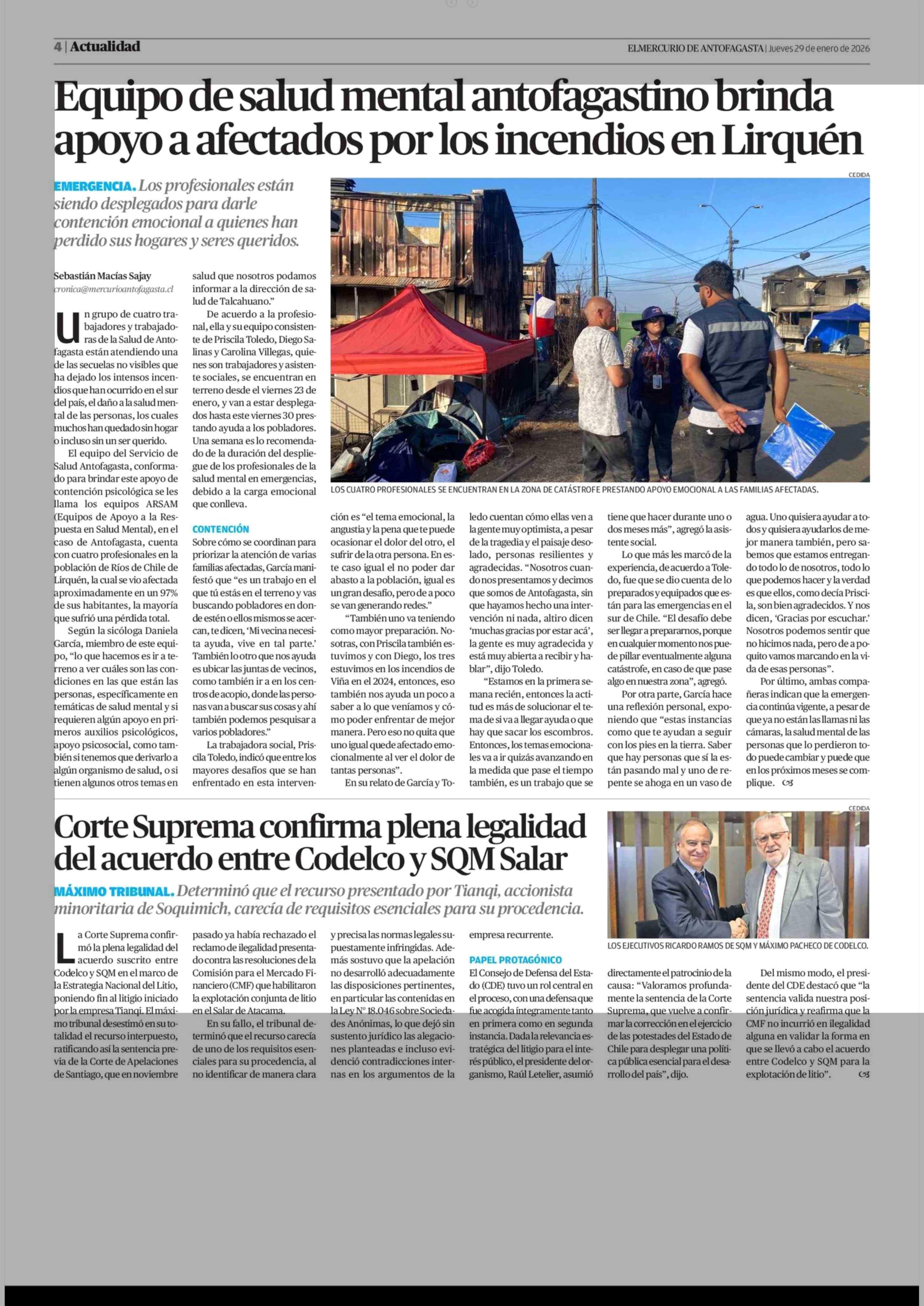 Fecha: 29-01-2026 Sector: Noticia general Región: Región de Antofagasta