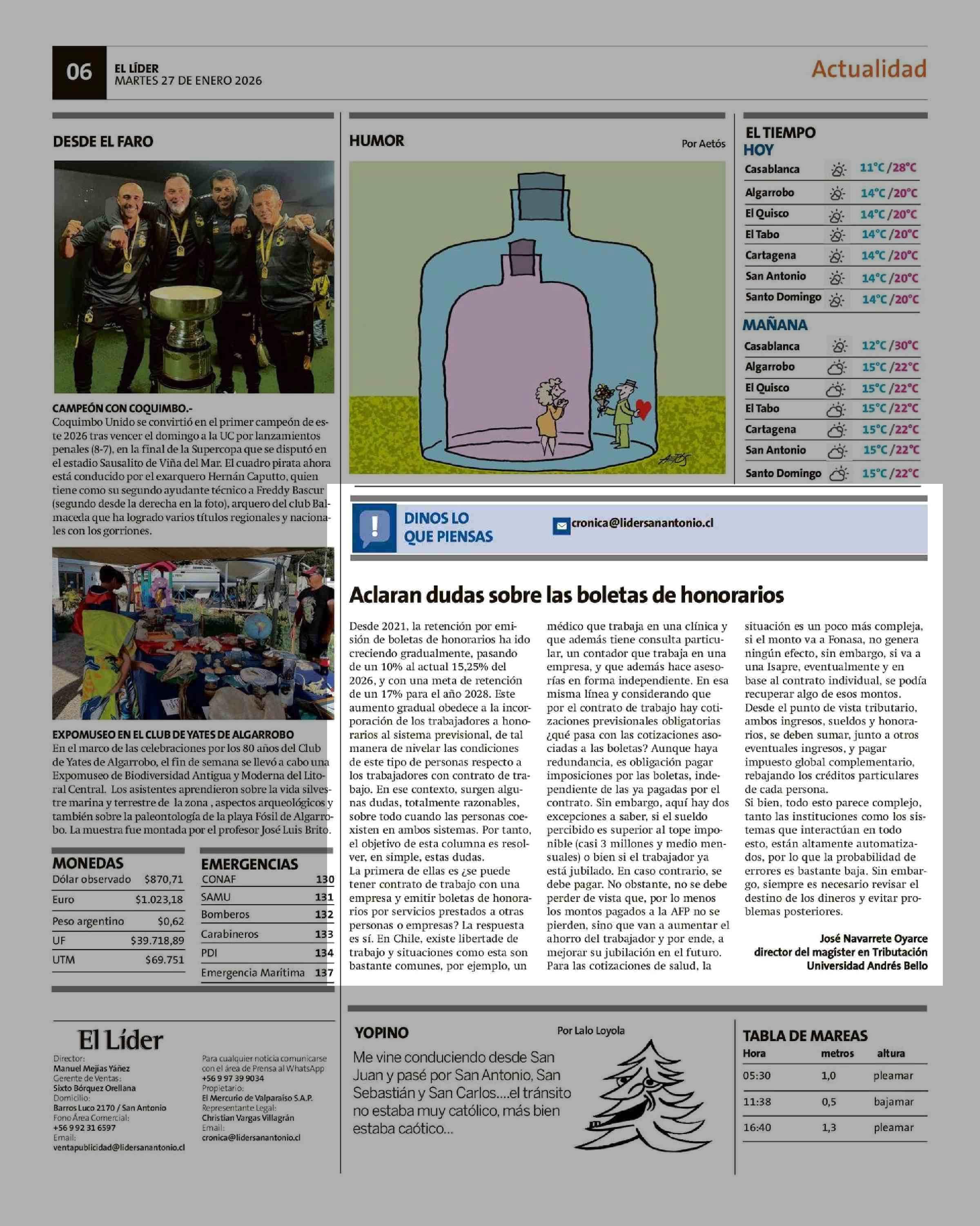 Título: Cartas: Aclaran dudas sobre las boletas de honorarios