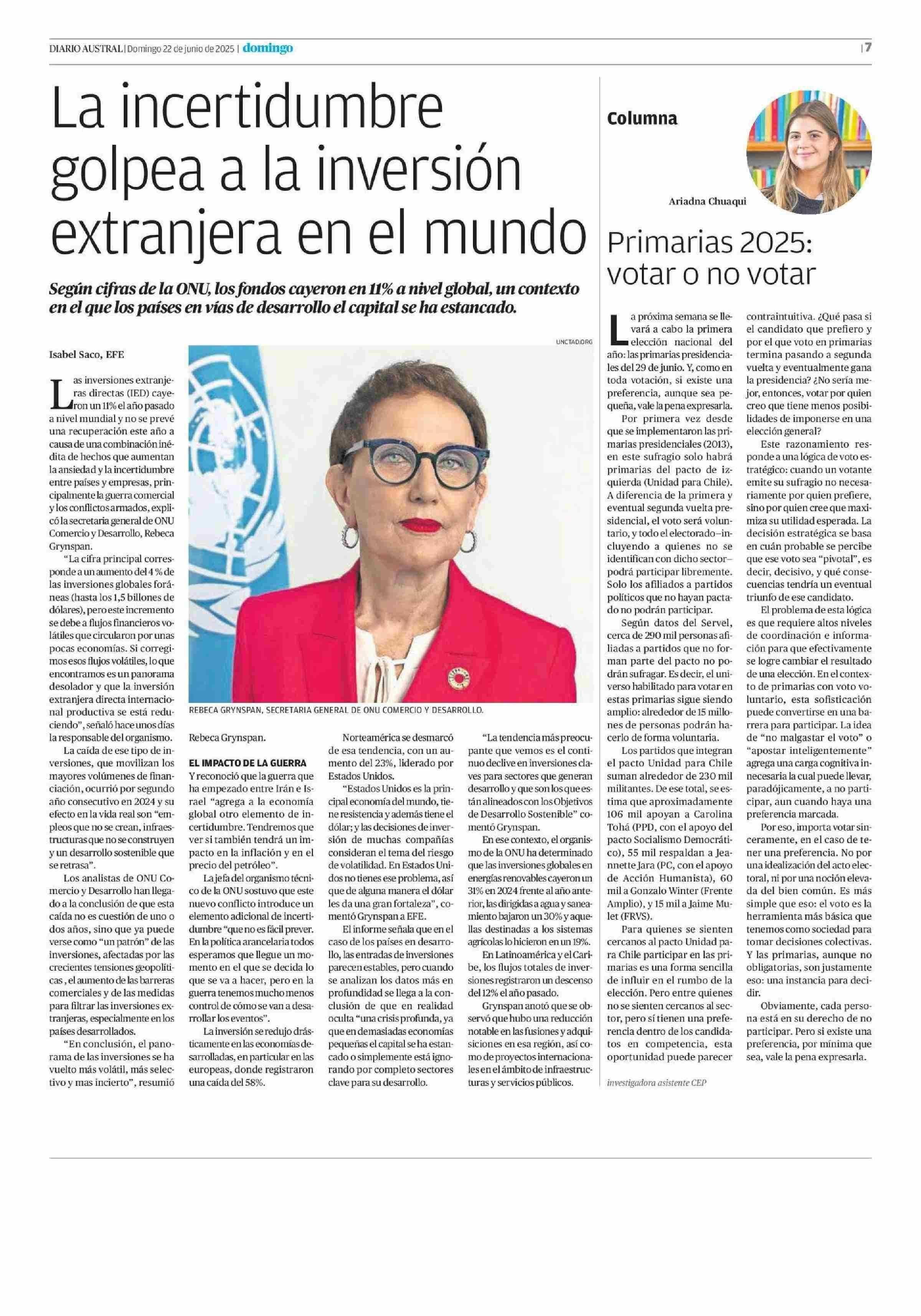 La incertidumbre eolpea a la inversión extranjera en el mundo 22-06-2025 Diario Austral Región de Los Ríos |