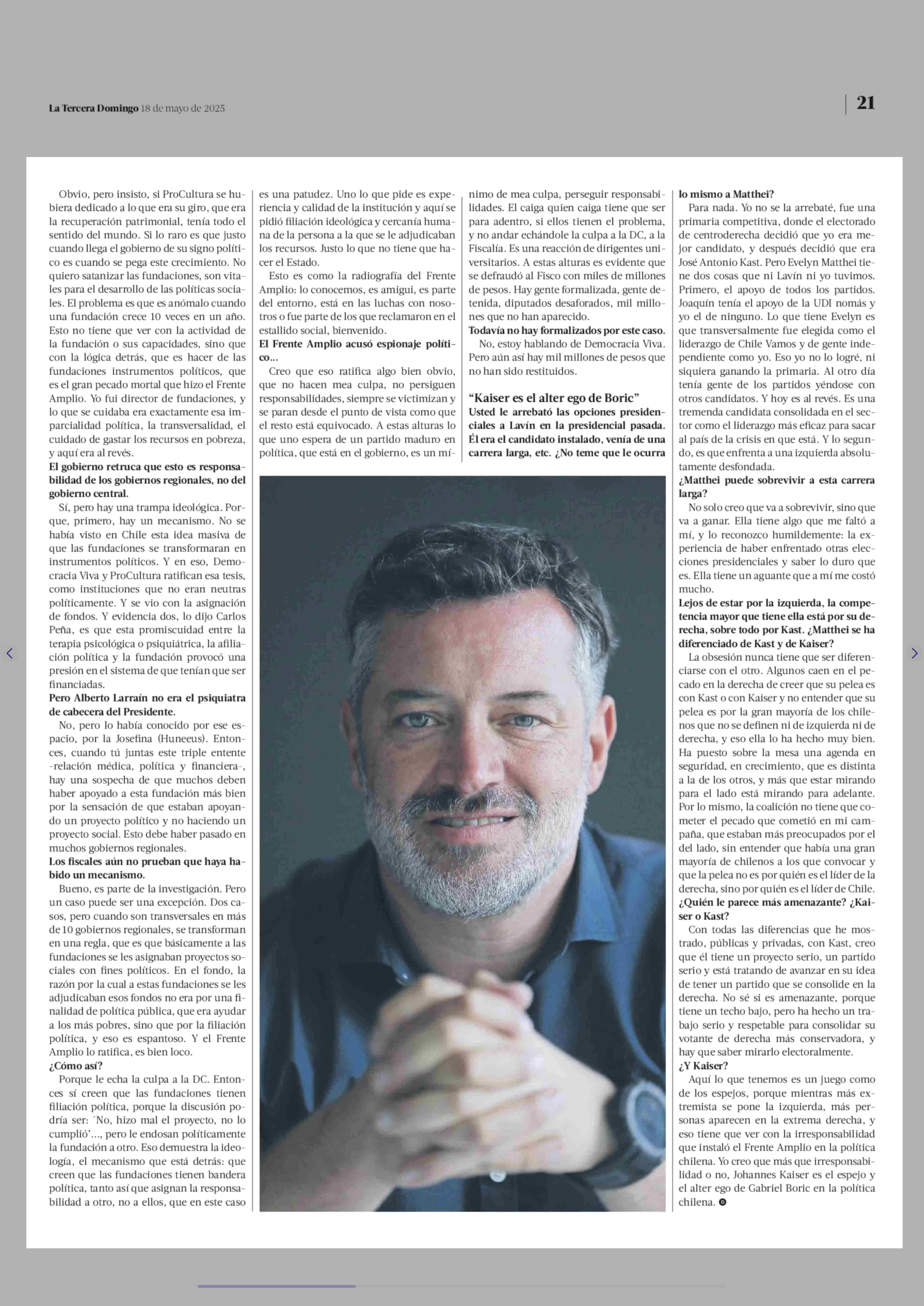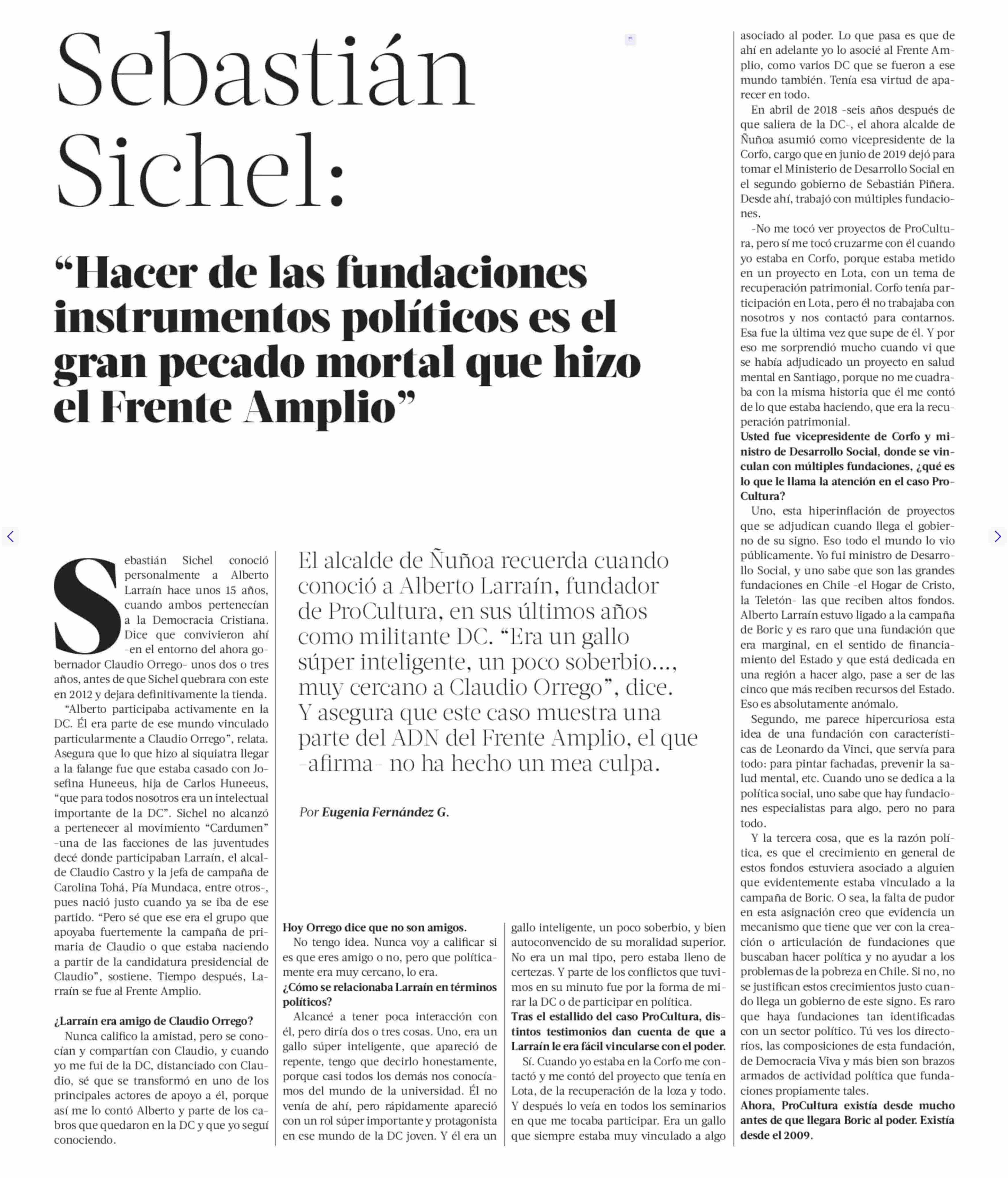 Sebastián Sichel: “Hacer de las fundaciones instrumentos políticos es el gran pecado mortal que hizo el Frente Amplio” 18-05-2025 La Tercera |