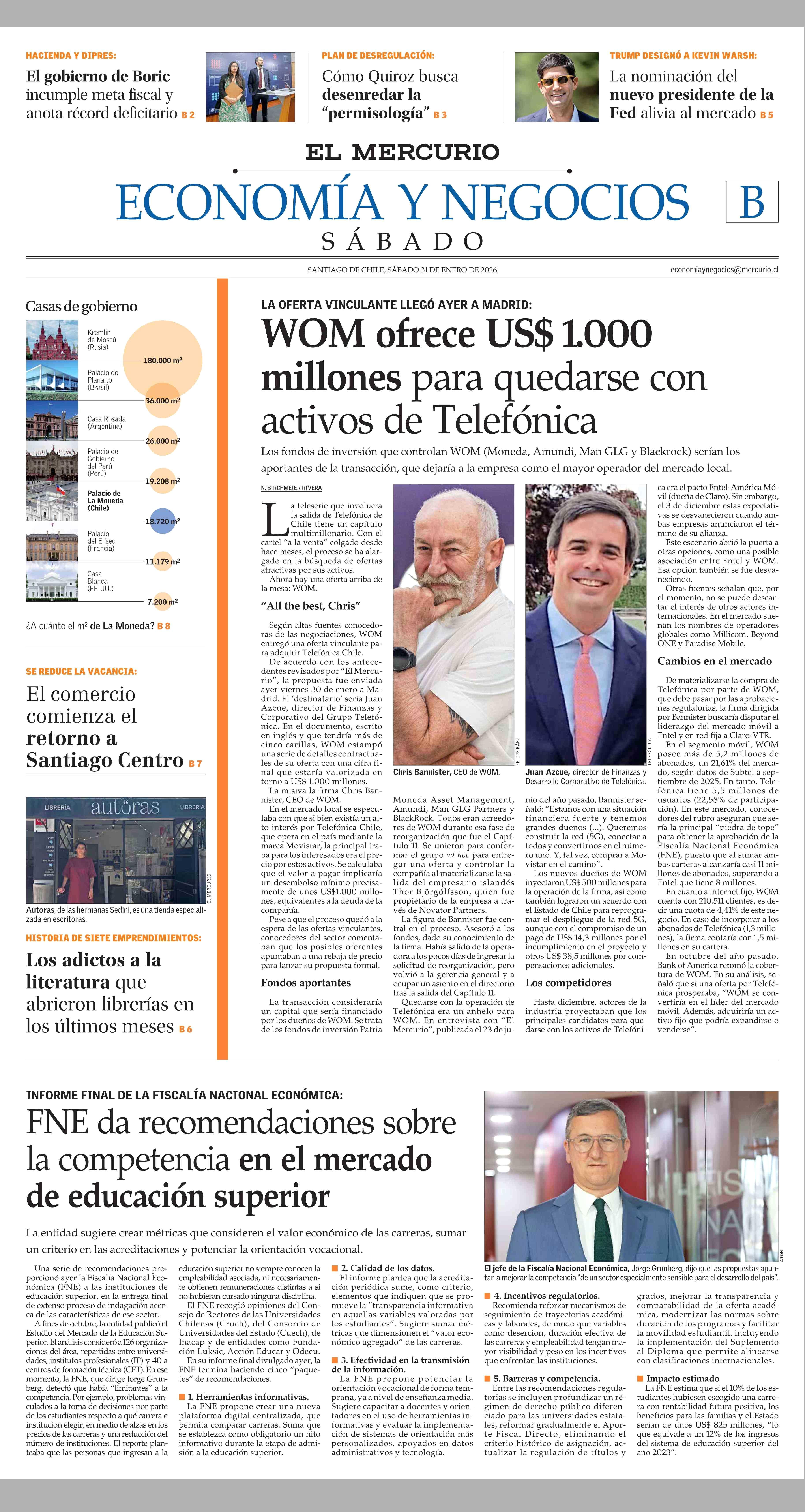 PORTADA EL MERCURIO (B) - CHILE 31-01-2026 El Mercurio |