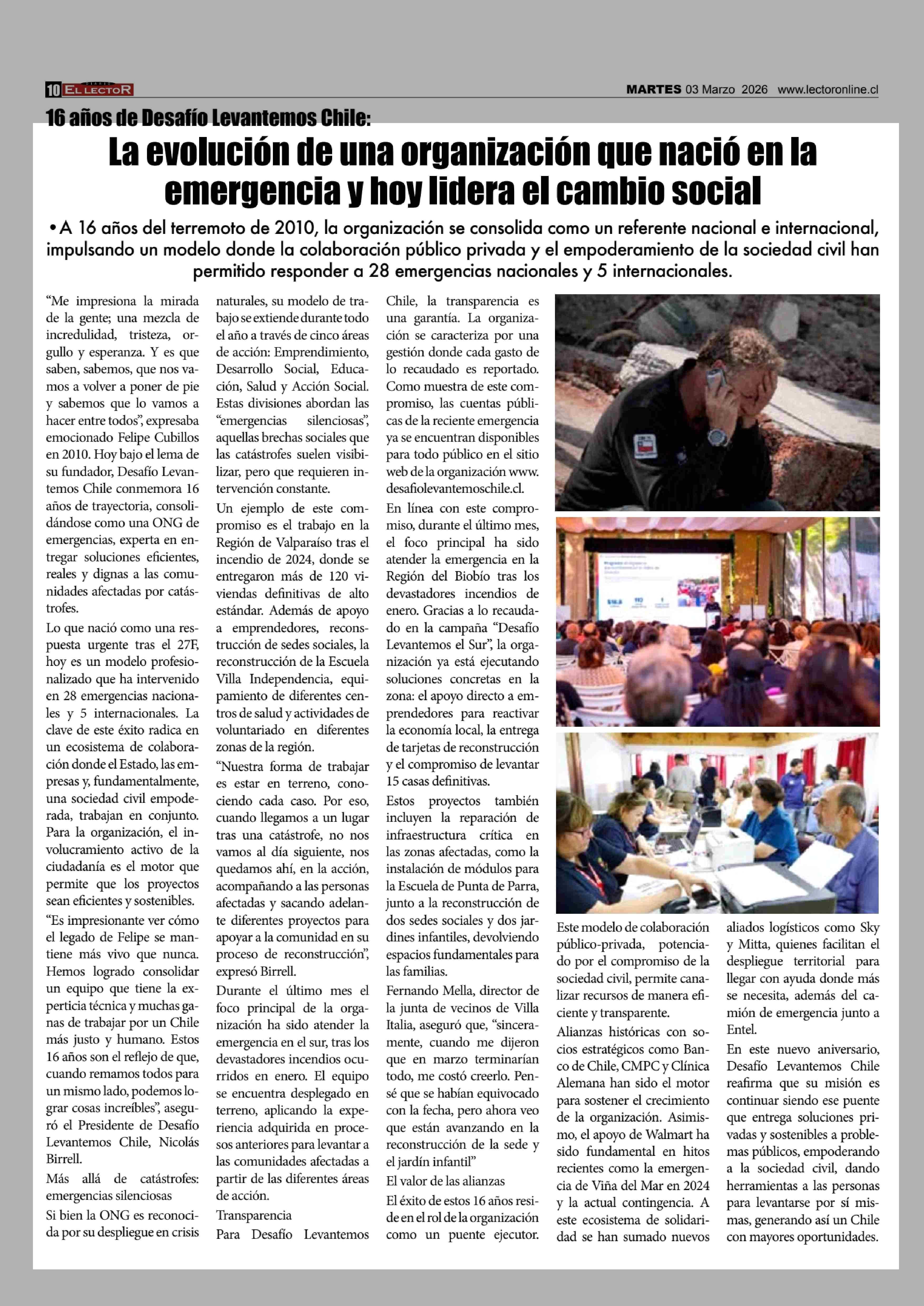 La evolución de una organización que nació en la emergencia y hoy lidera el cambio social 03-03-2026 El Lector |