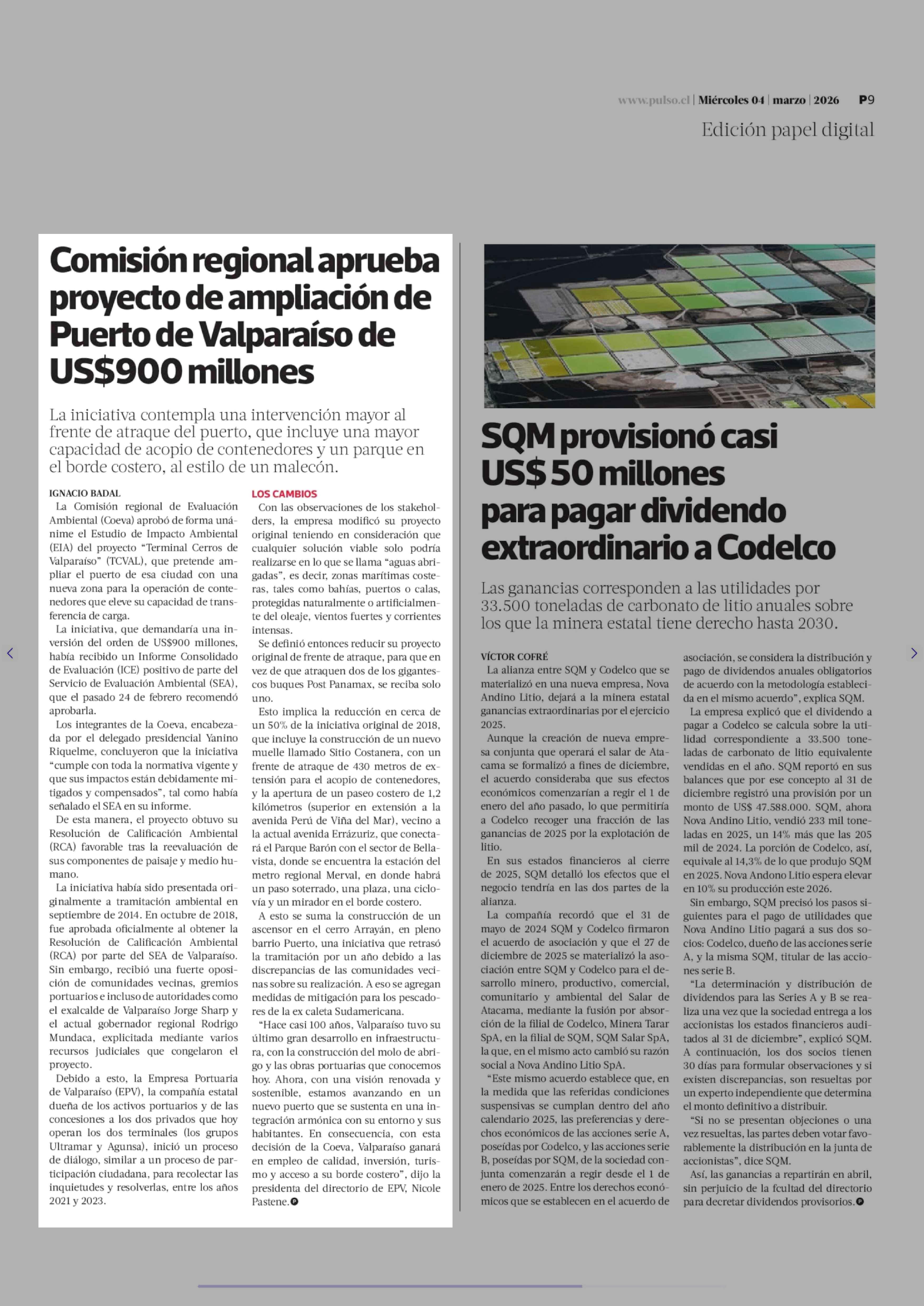 Título: Comisión regional aprueba proyecto de ampliación de Puerto de Valparaíso de US$900 millones
