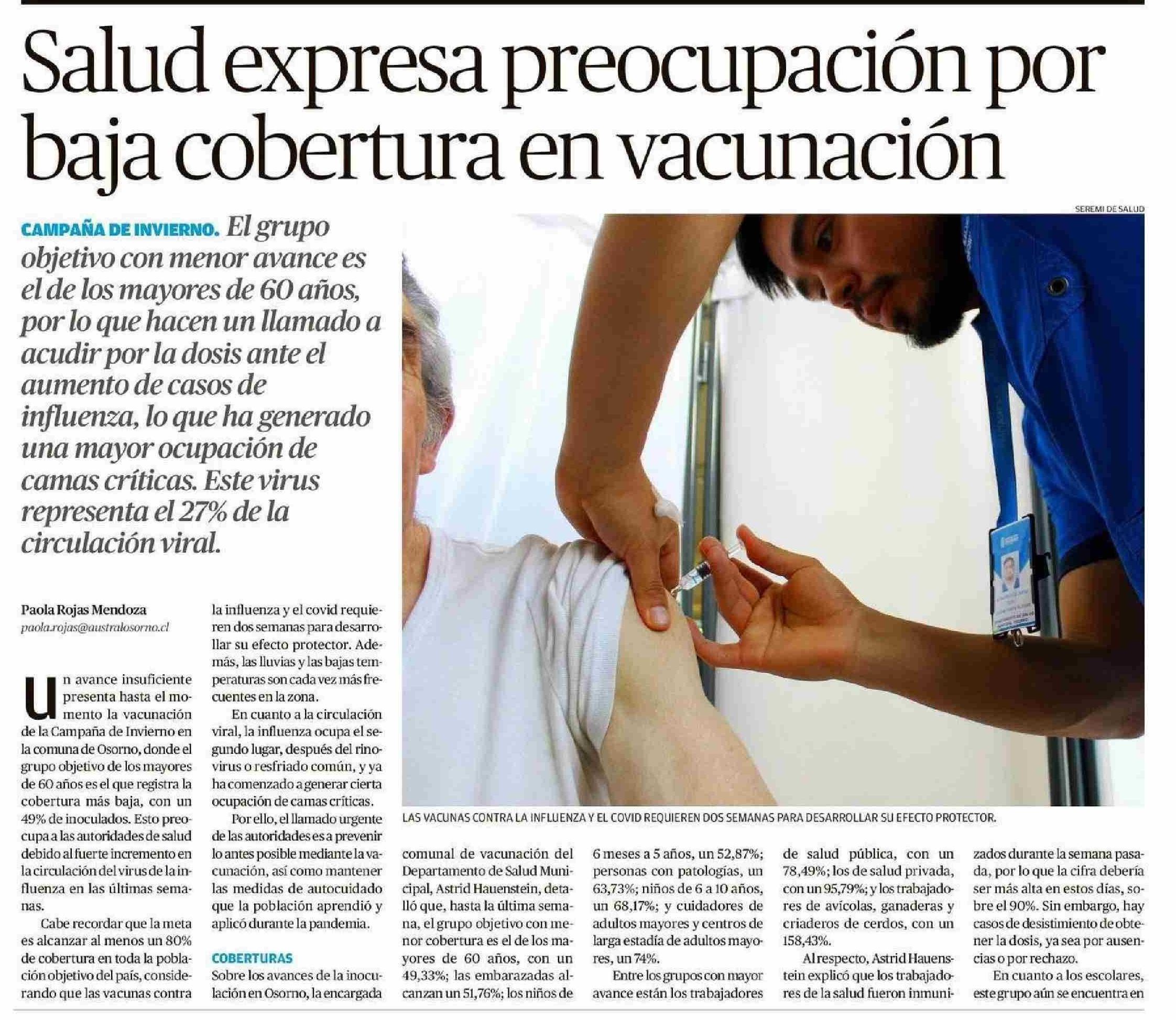 Salud expresa preocupación por baja cobertura en vacunación 12-05-2025 El Austral de Osorno |