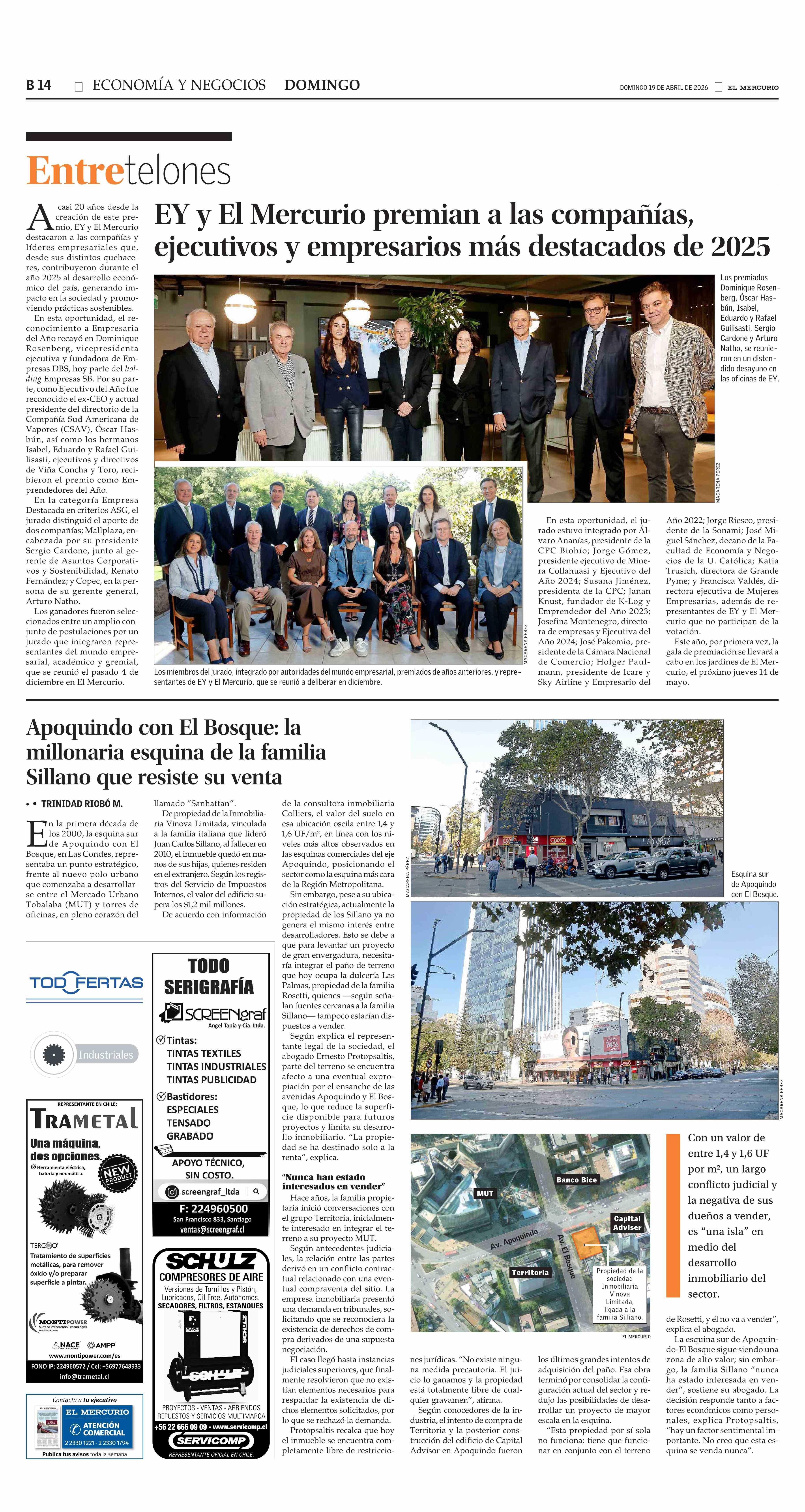 EY y El Mercurio premian a las compañías, ejecutivos y empresarios más destacados de 2025 19-04-2026 El Mercurio |