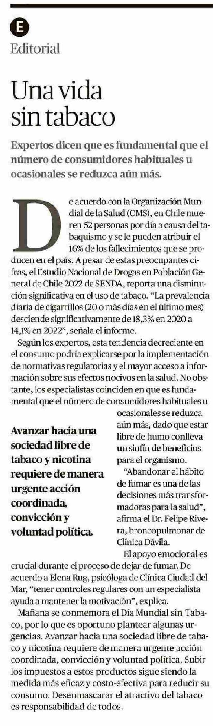 Editorial: Una vida sin tabaco 30-05-2025 El Austral de la Araucanía |
