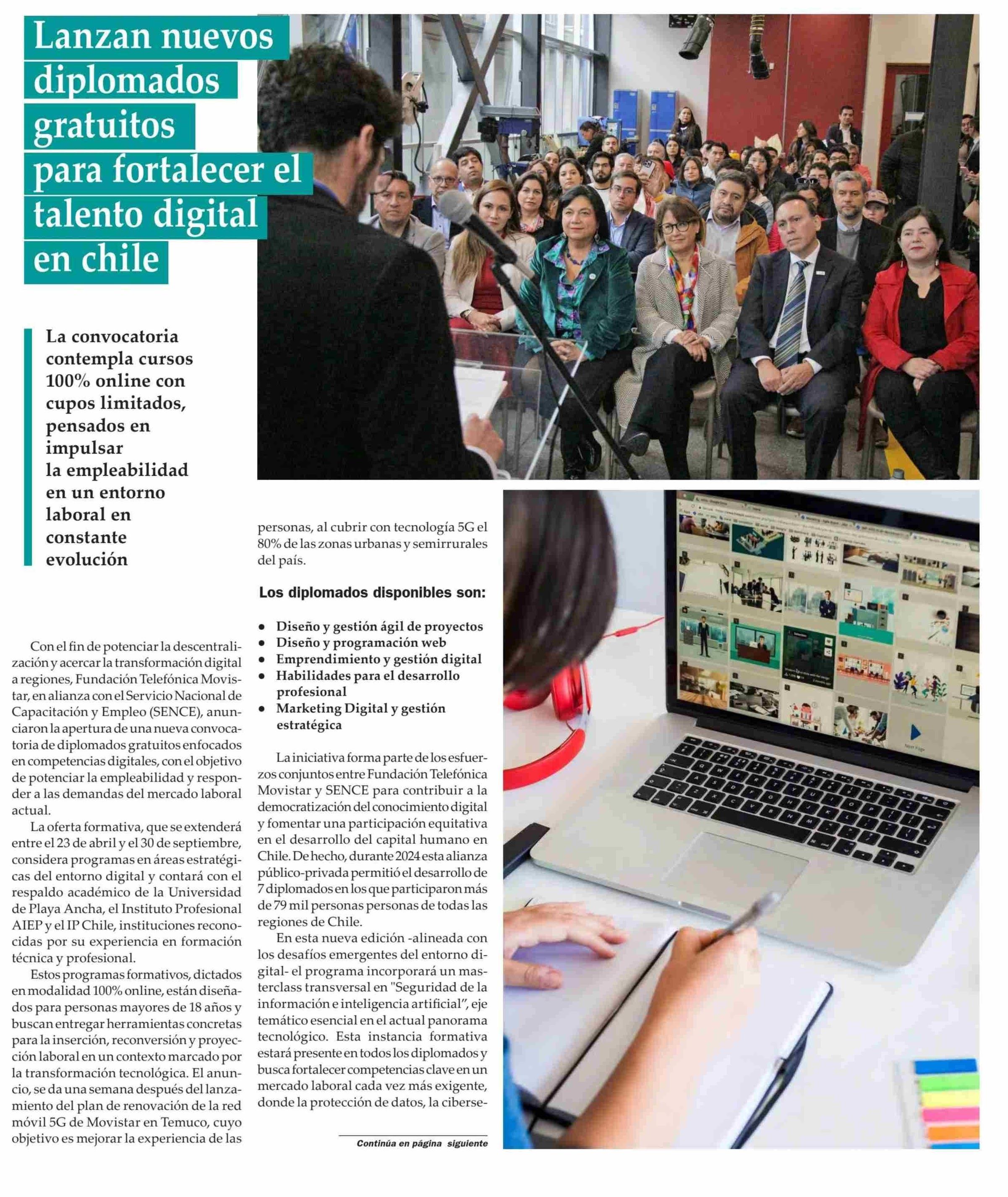 | Título: | Lanzan nuevos diplomados gratuitos para fortalecer el talento digital en chile |