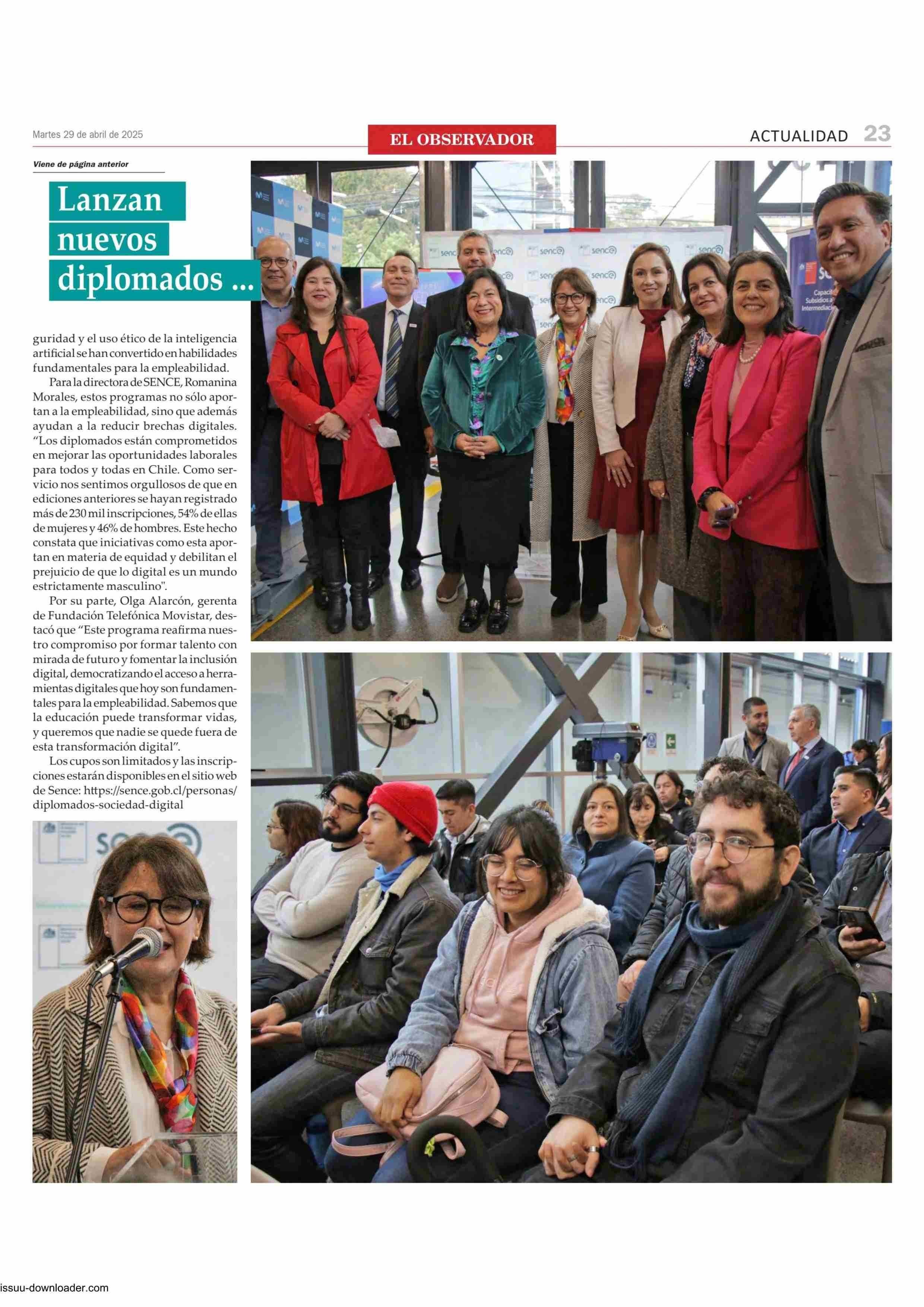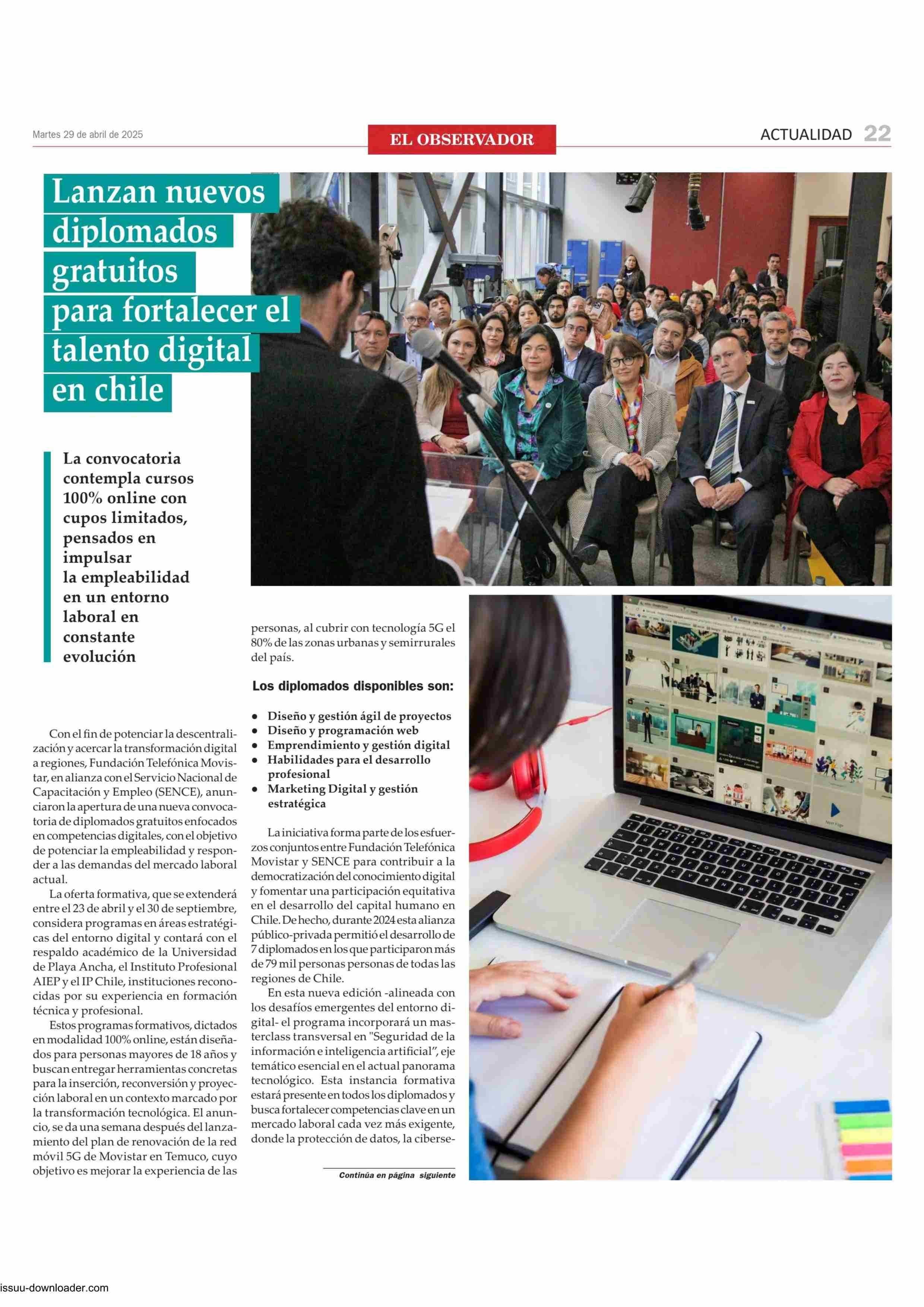 Lanzan nuevos diplomados gratuitos para fortalecer el talento digital en chile 29-04-2025 El Observador Vespertino |