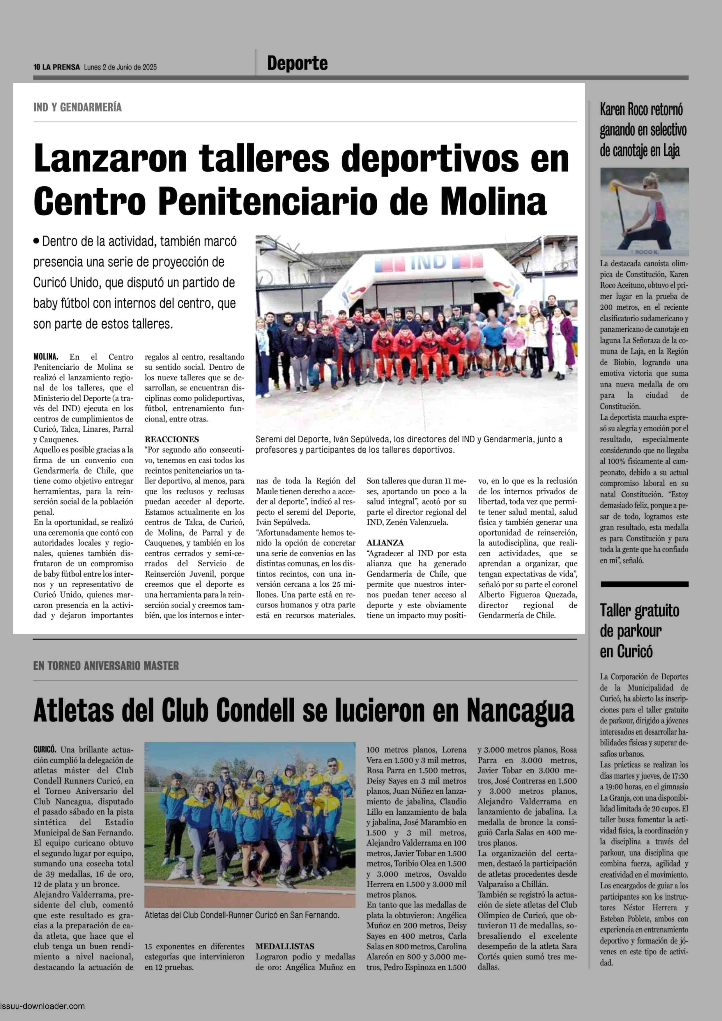 Lanzaron talleres deportivos en Centro Penitenciario de Molina 02-06-2025 La Prensa de Curicó |