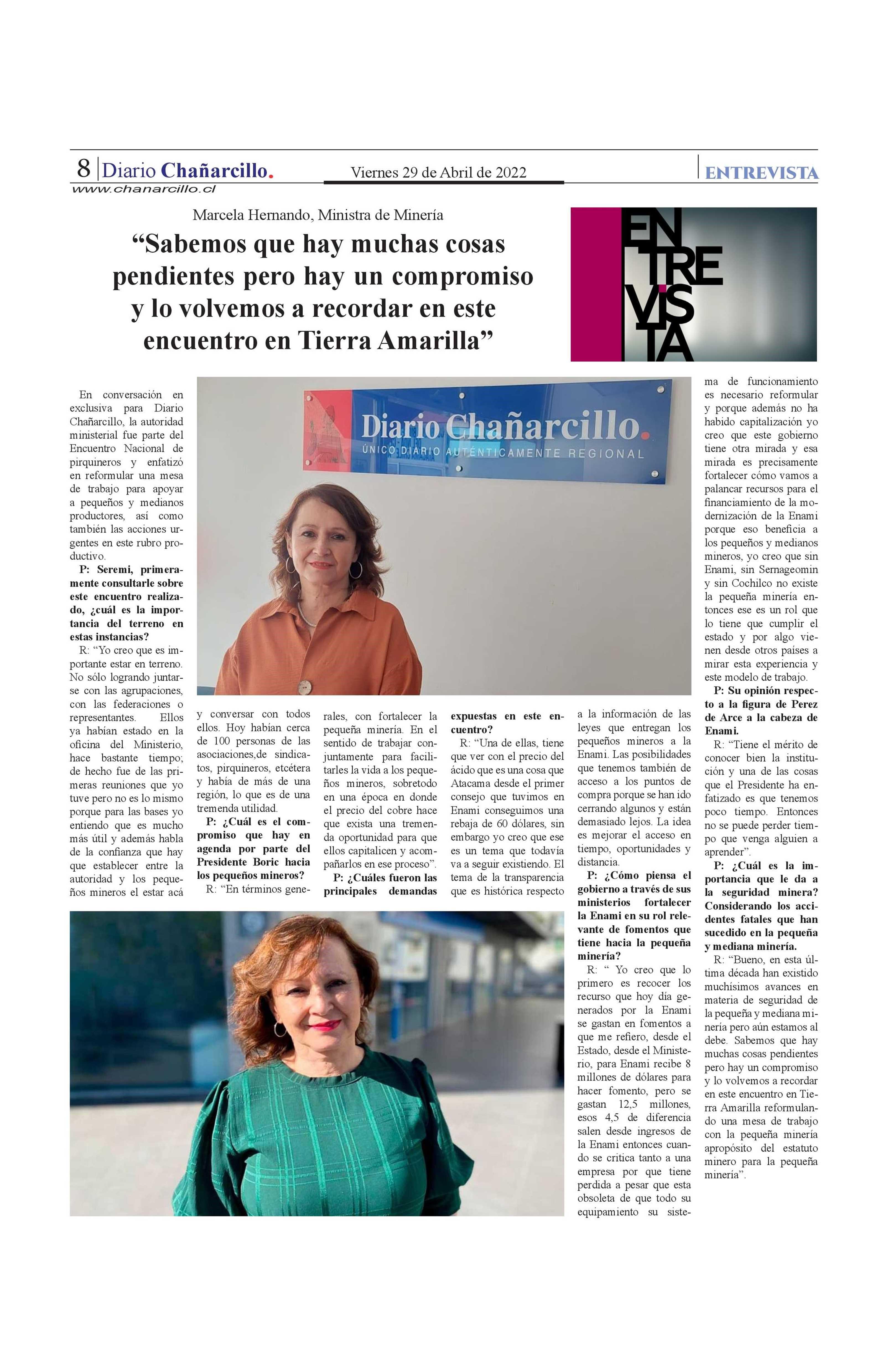 “Sabemos que hay muchas cosas pendientes pero hay un compromiso y lo volvemos a recordar en este encuentro en Tierra Amarilla” 29-04-2022 Diario Chañarcillo |