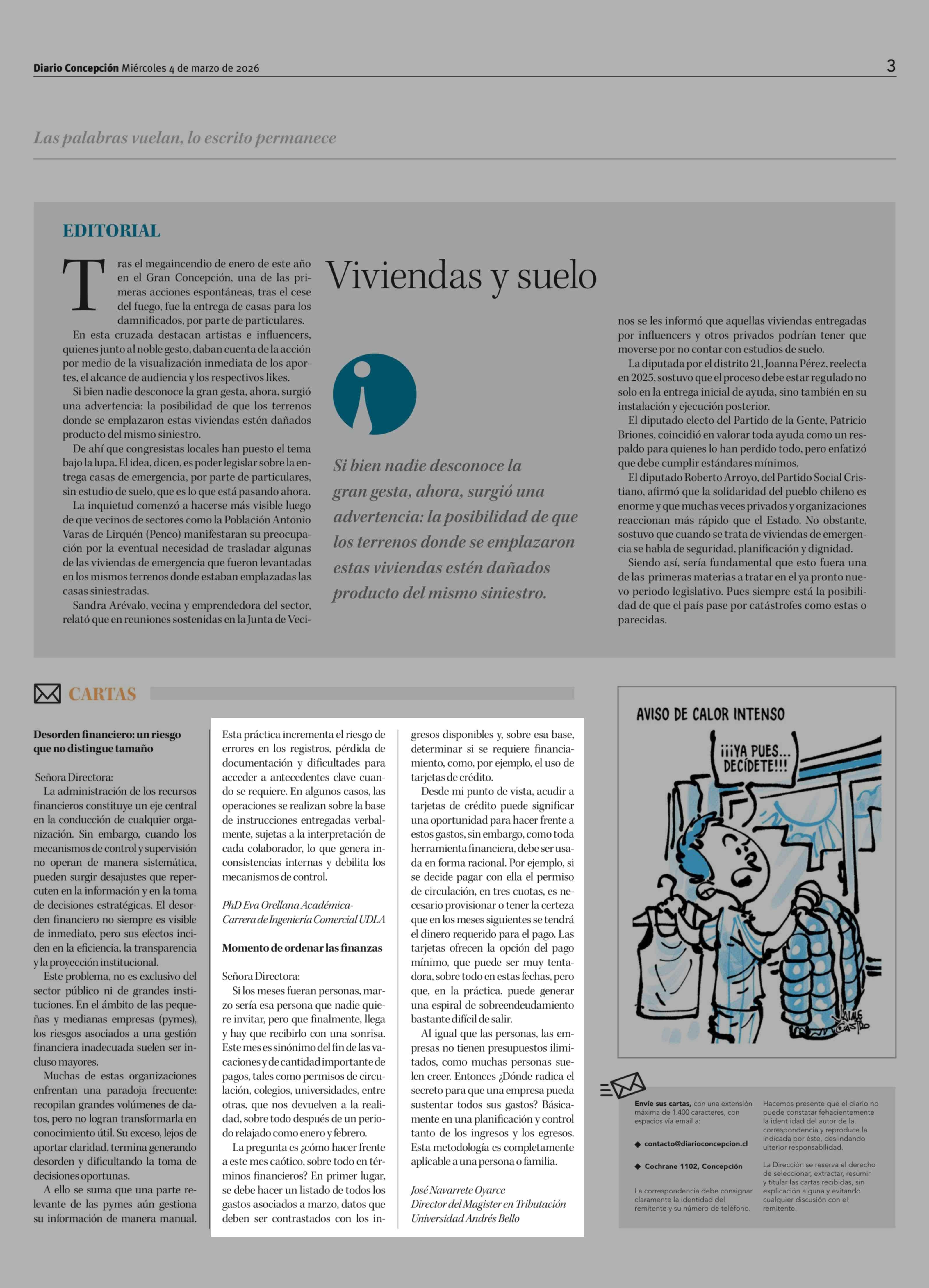 Cartas: Momento de ordenar las finanzas 04-03-2026 Diario Concepción |