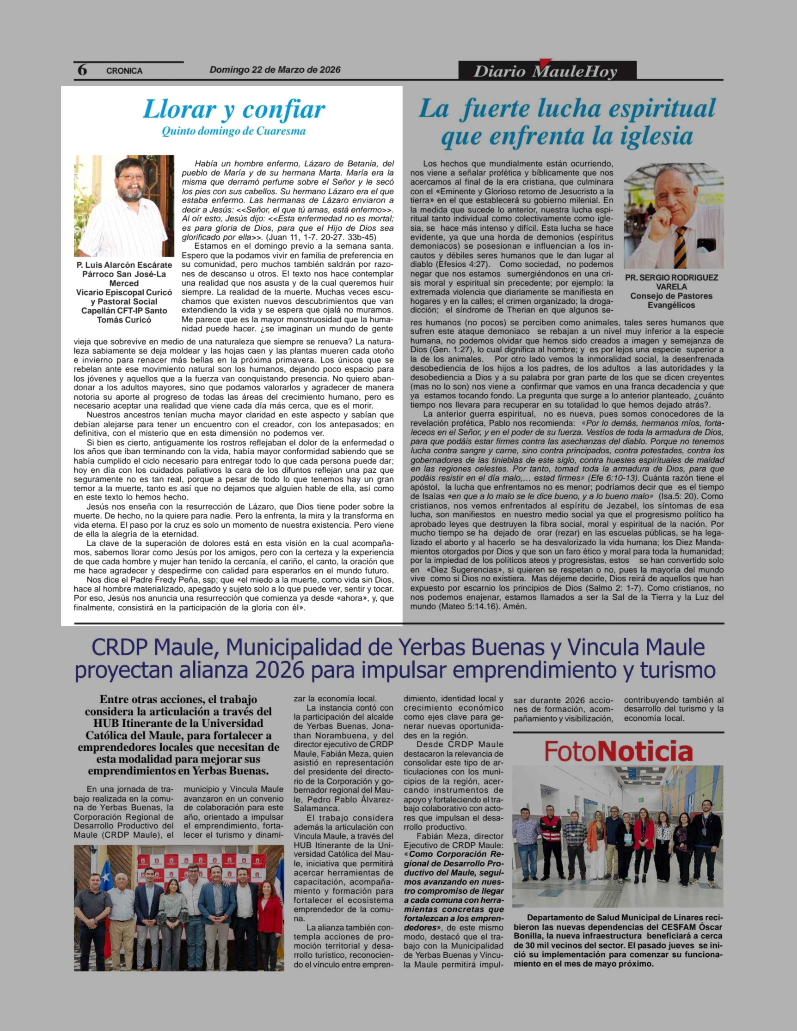 Columnas de Opinión: Llorar y confiar 22-03-2026 Maule Hoy |