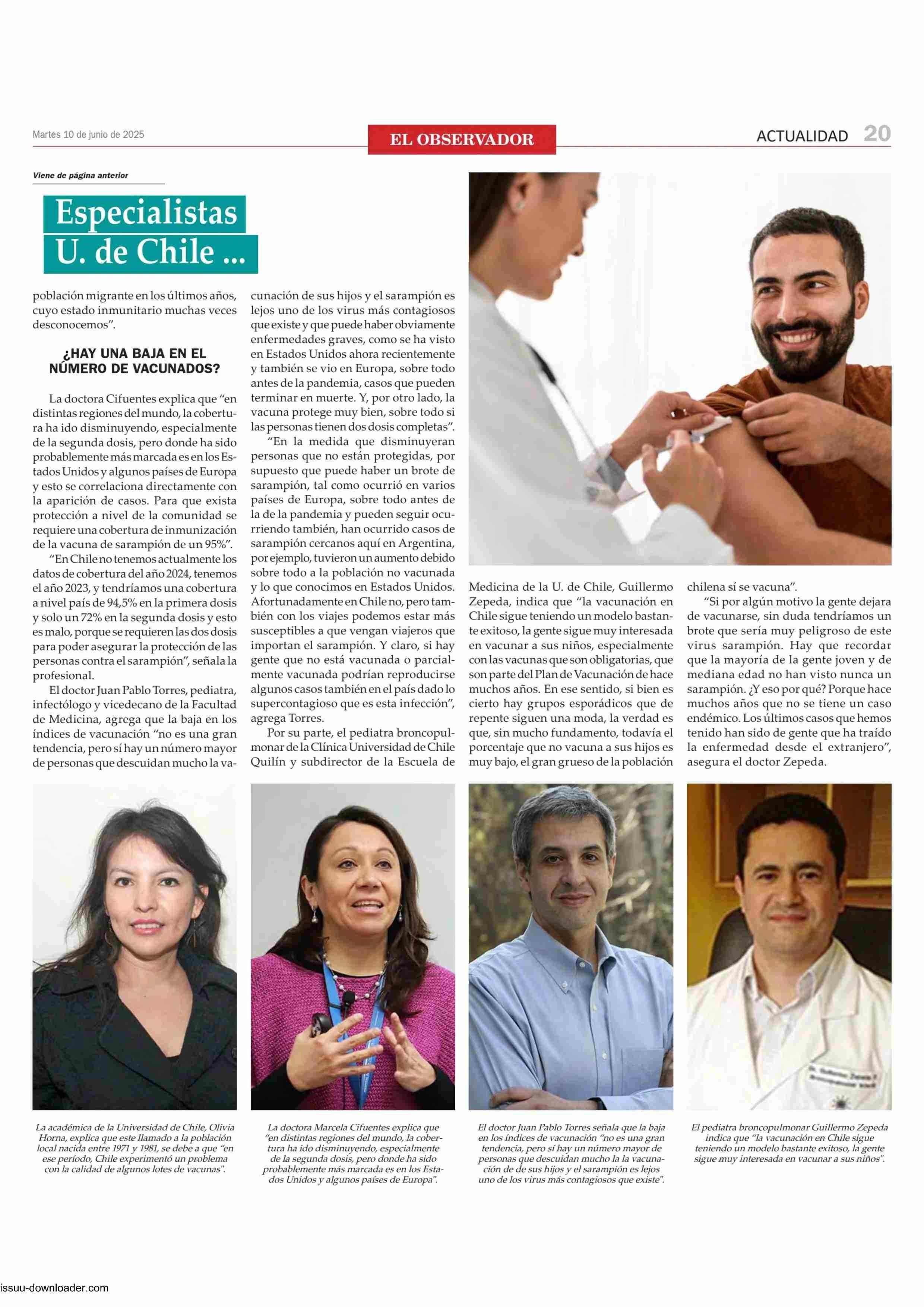 Especialistas U. de Chile refuerzan llamado a vacunarse ante riesgo de brotes de sarampión 10-06-2025 El Observador Vespertino |