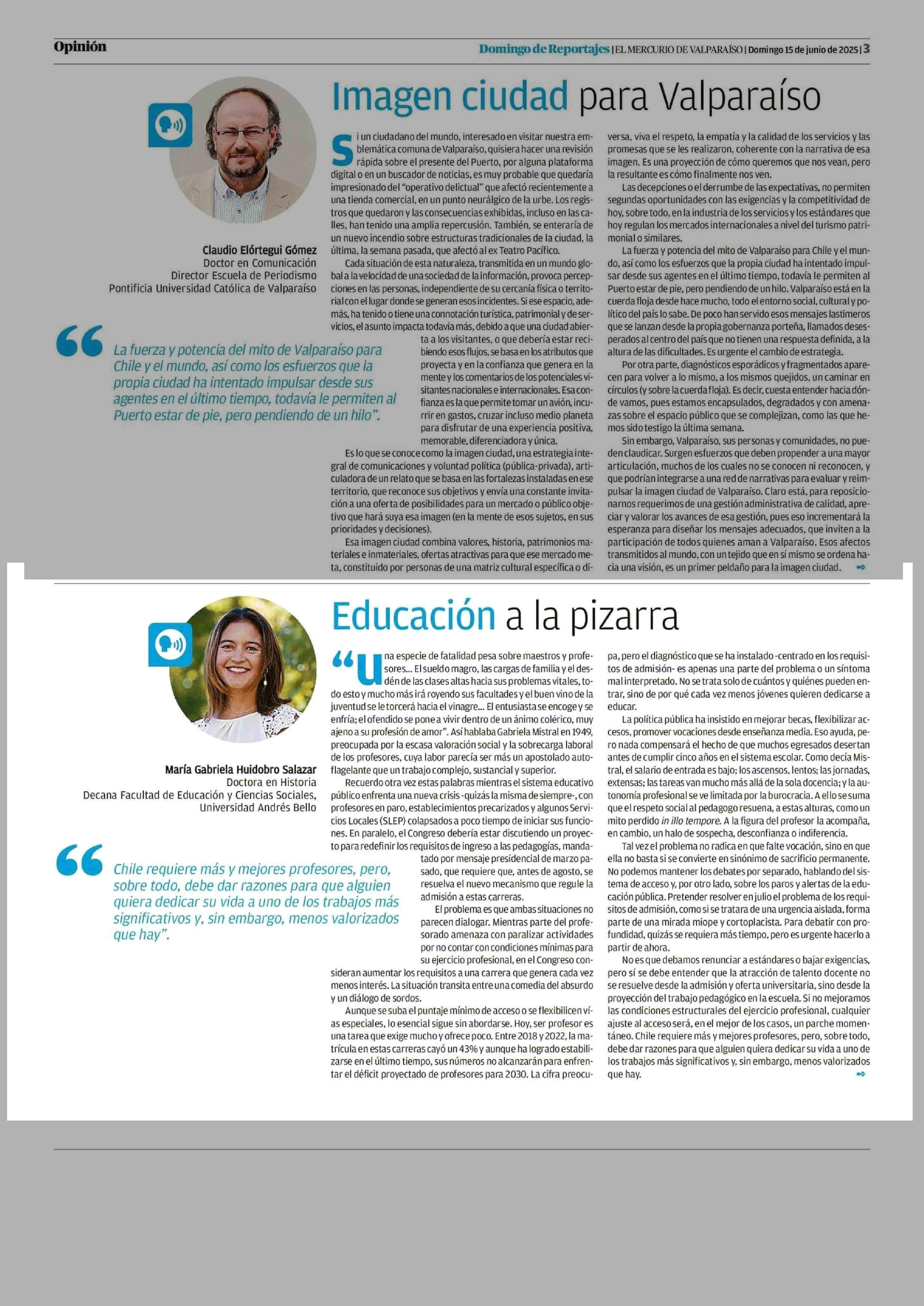 COLUMNAS DE OPINIÓN: Educación a la pizarra 15-06-2025 El Mercurio de Valparaíso |