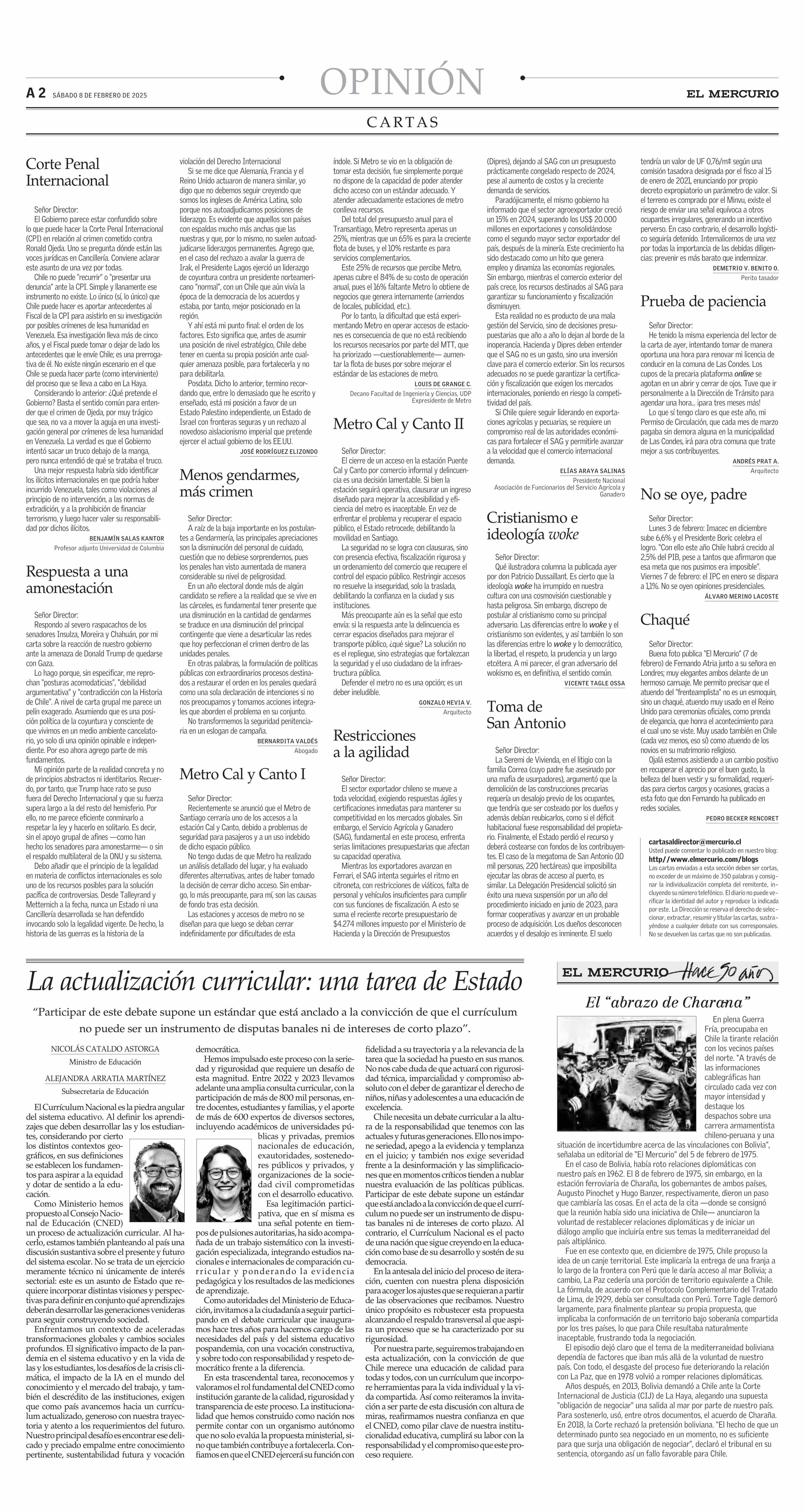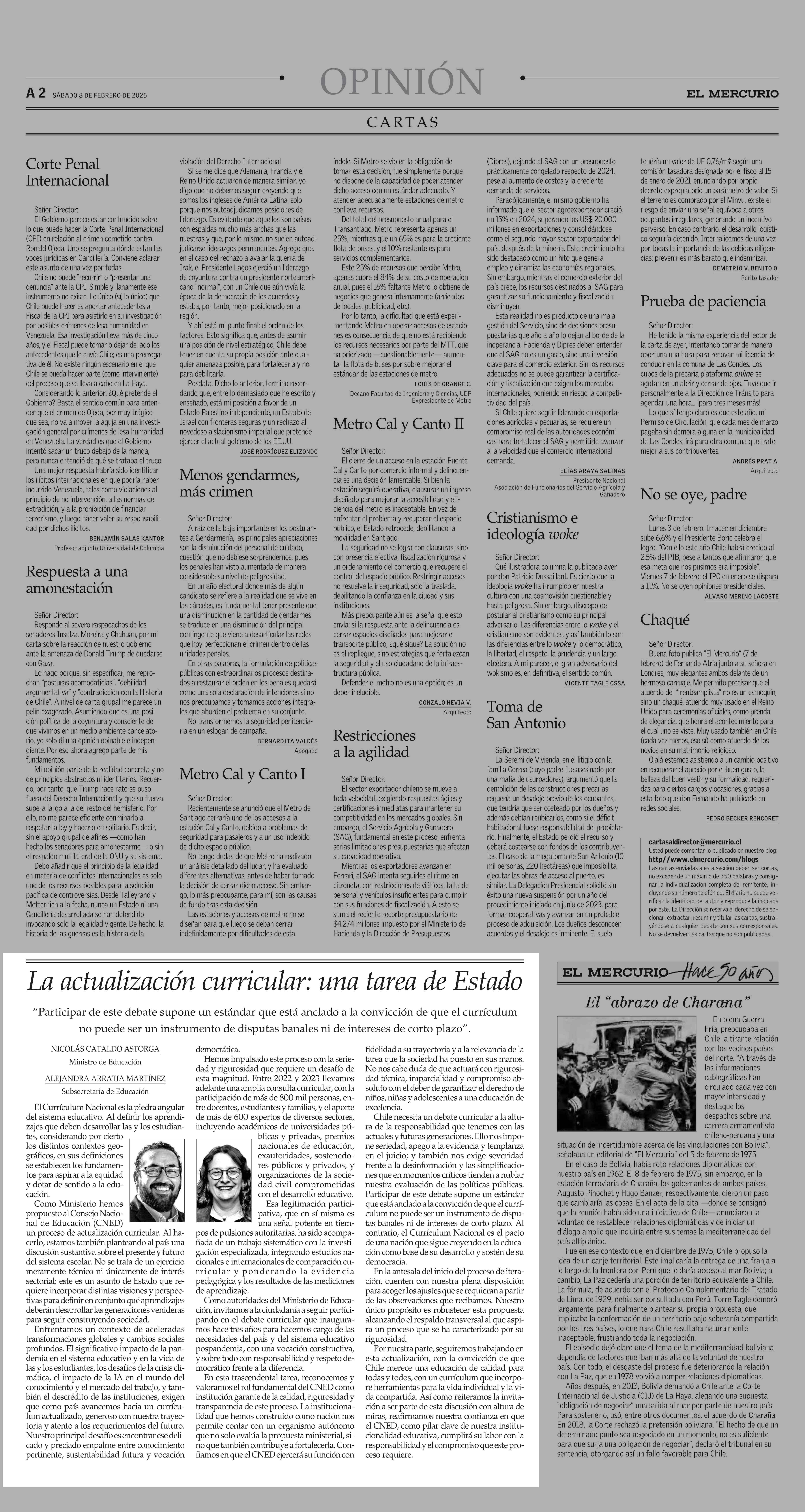 La actualización curricular: una tarea de Estado 08-02-2025 El Mercurio |
