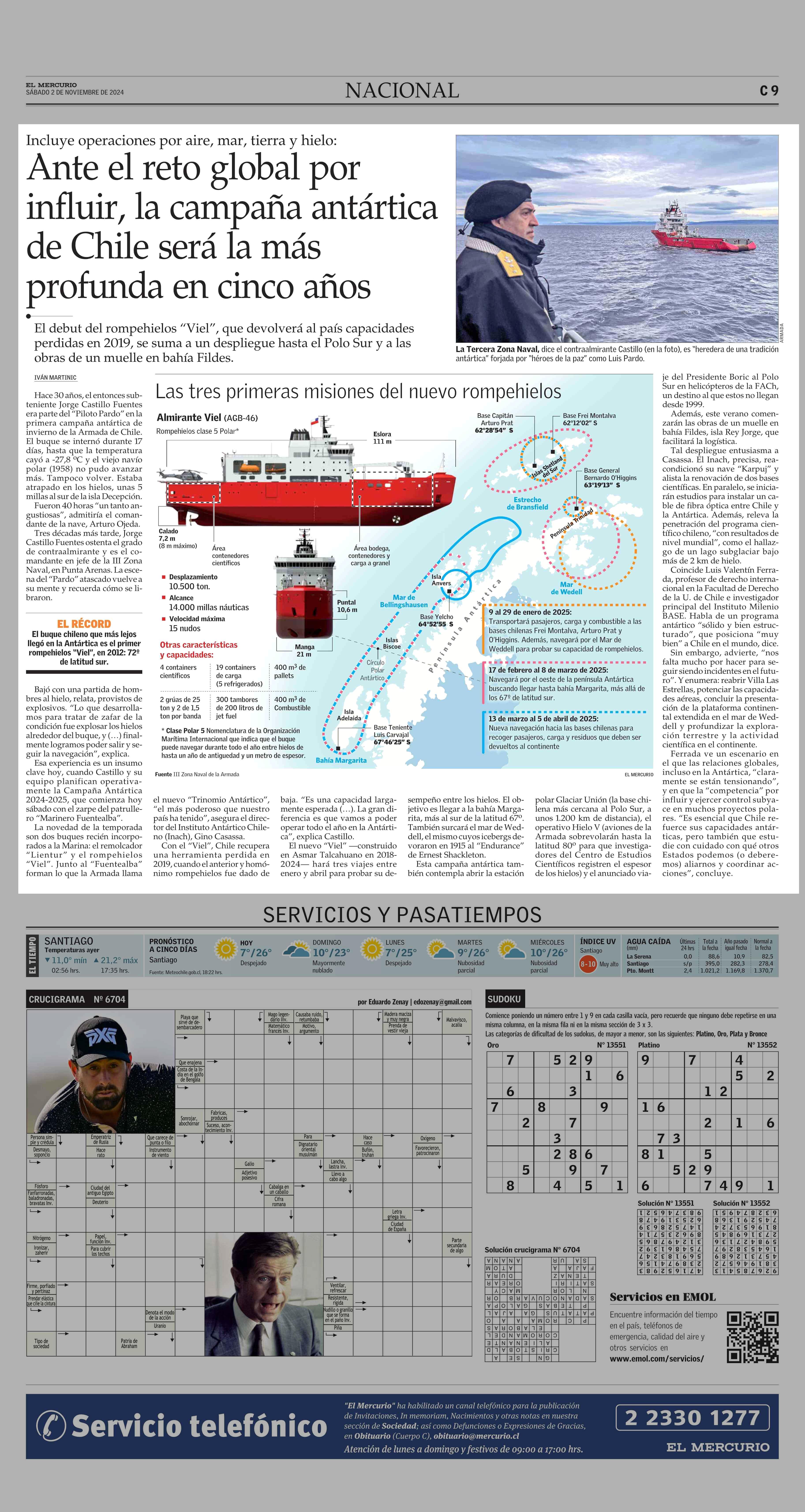 Ante el reto global por influir, la campaña antártica de Chile será la más profunda en cinco años 02-11-2024 El Mercurio |