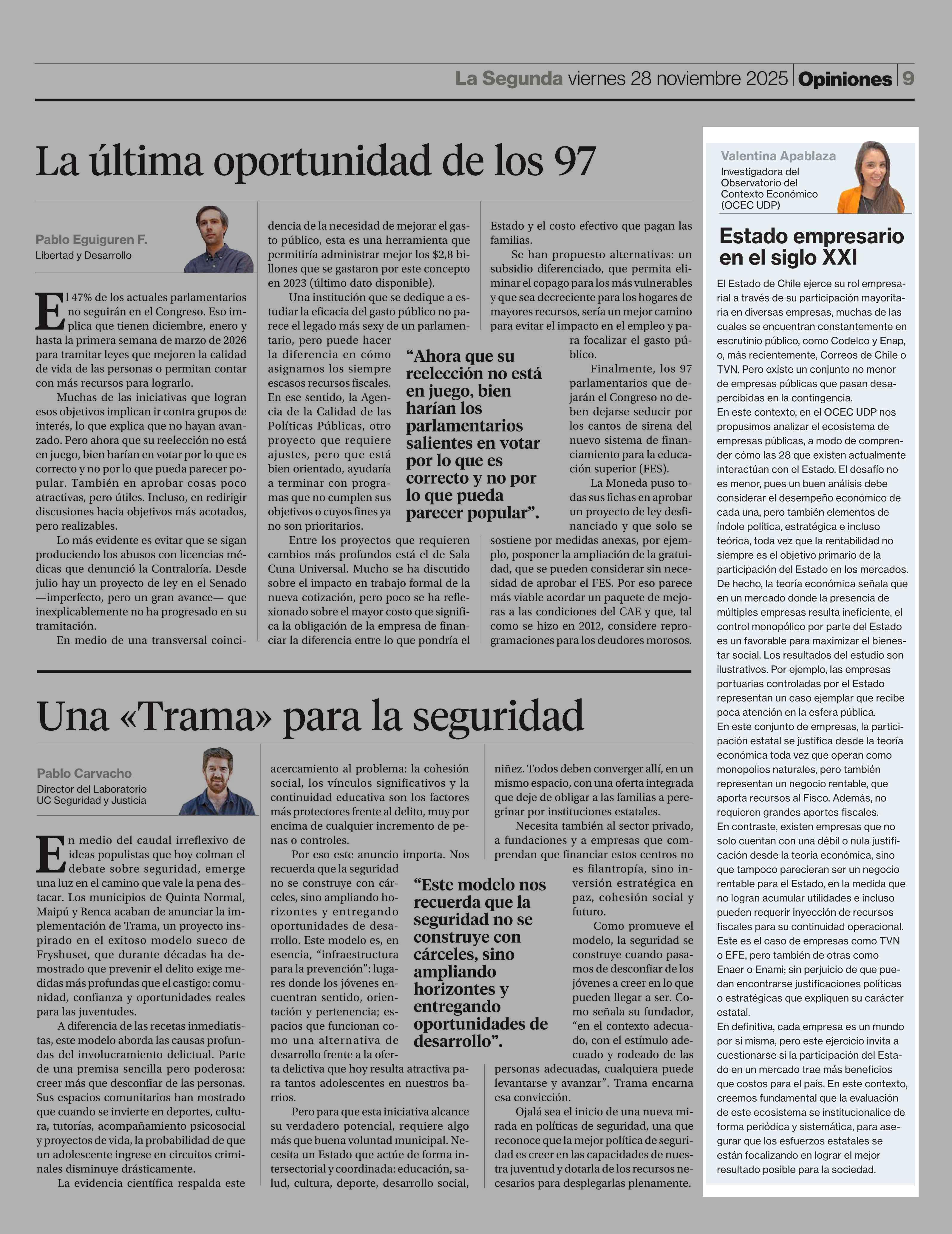 Columnas de Opinión: Estado empresario en el siglo XXI 28-11-2025 La Segunda |