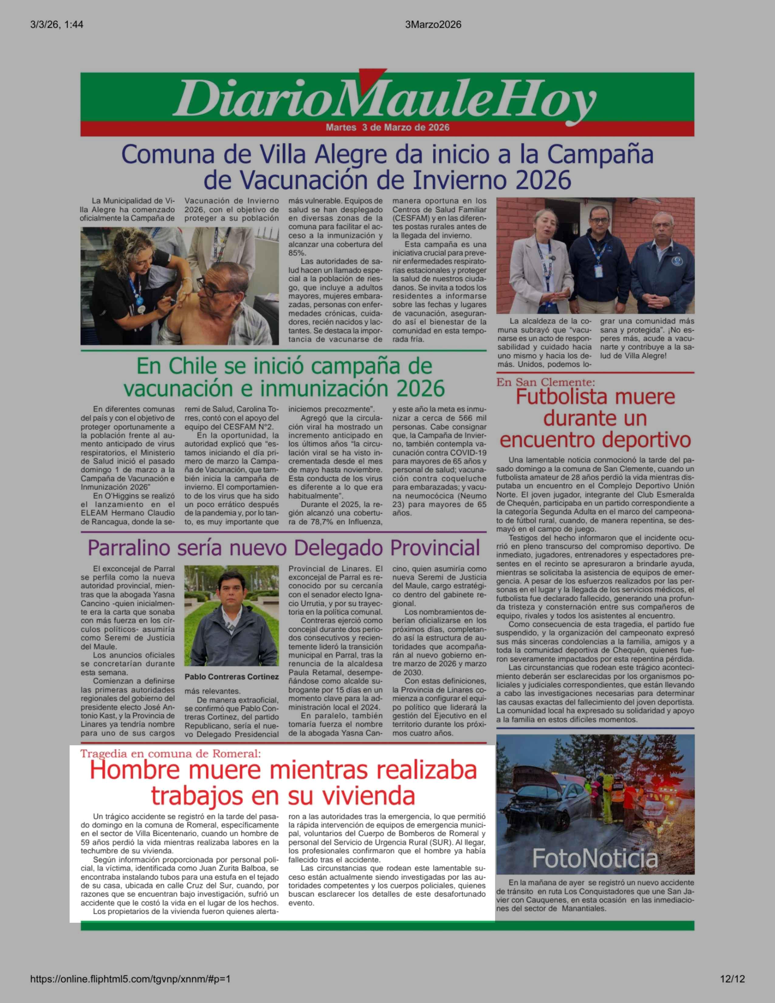 | Fecha: | 03-03-2026 | Sector: | Noticia general | Región: | Región del Maule |