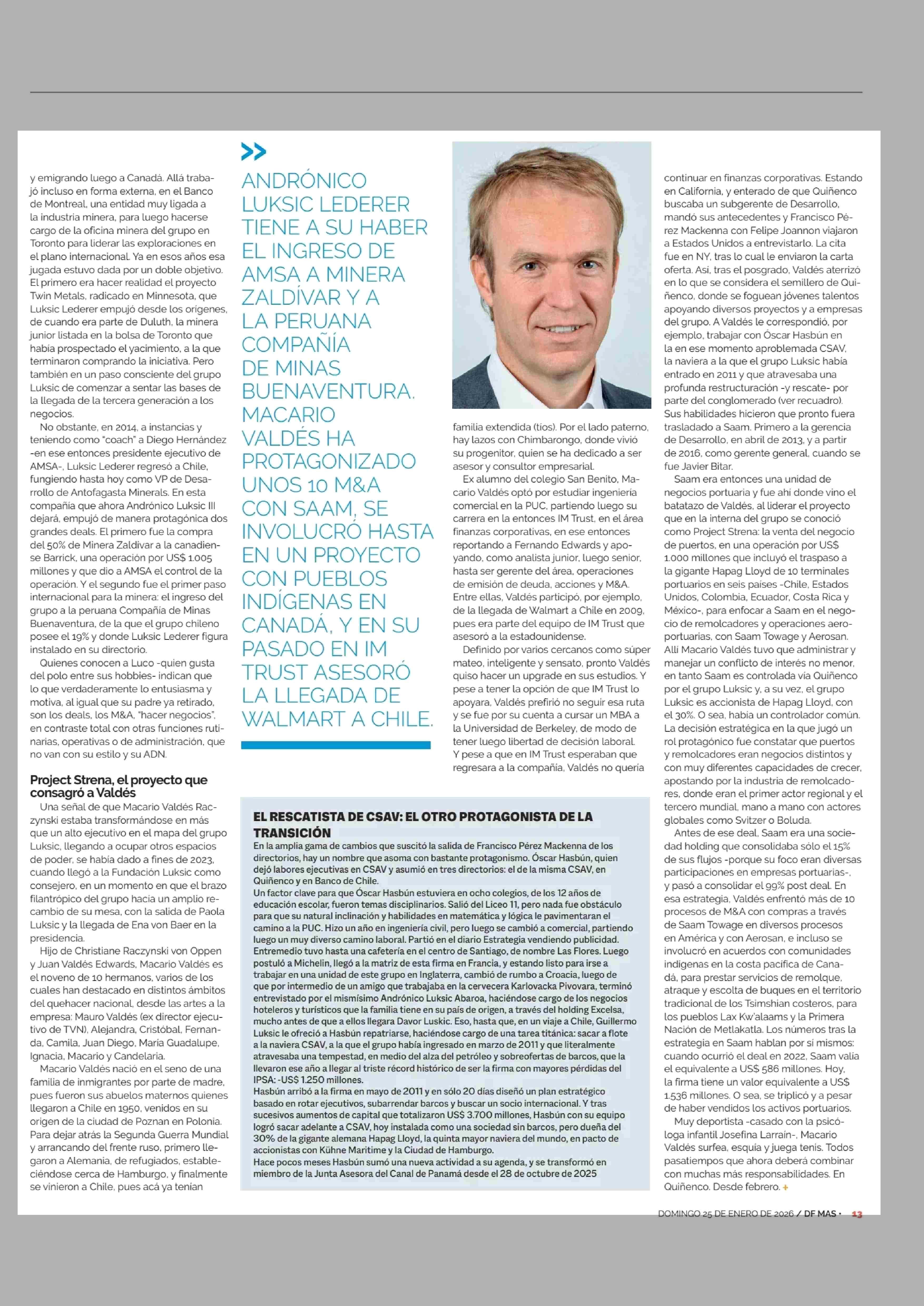 Fuente: Diario Financiero (Diario Financiero - DF Mas) Página(s): 12-13