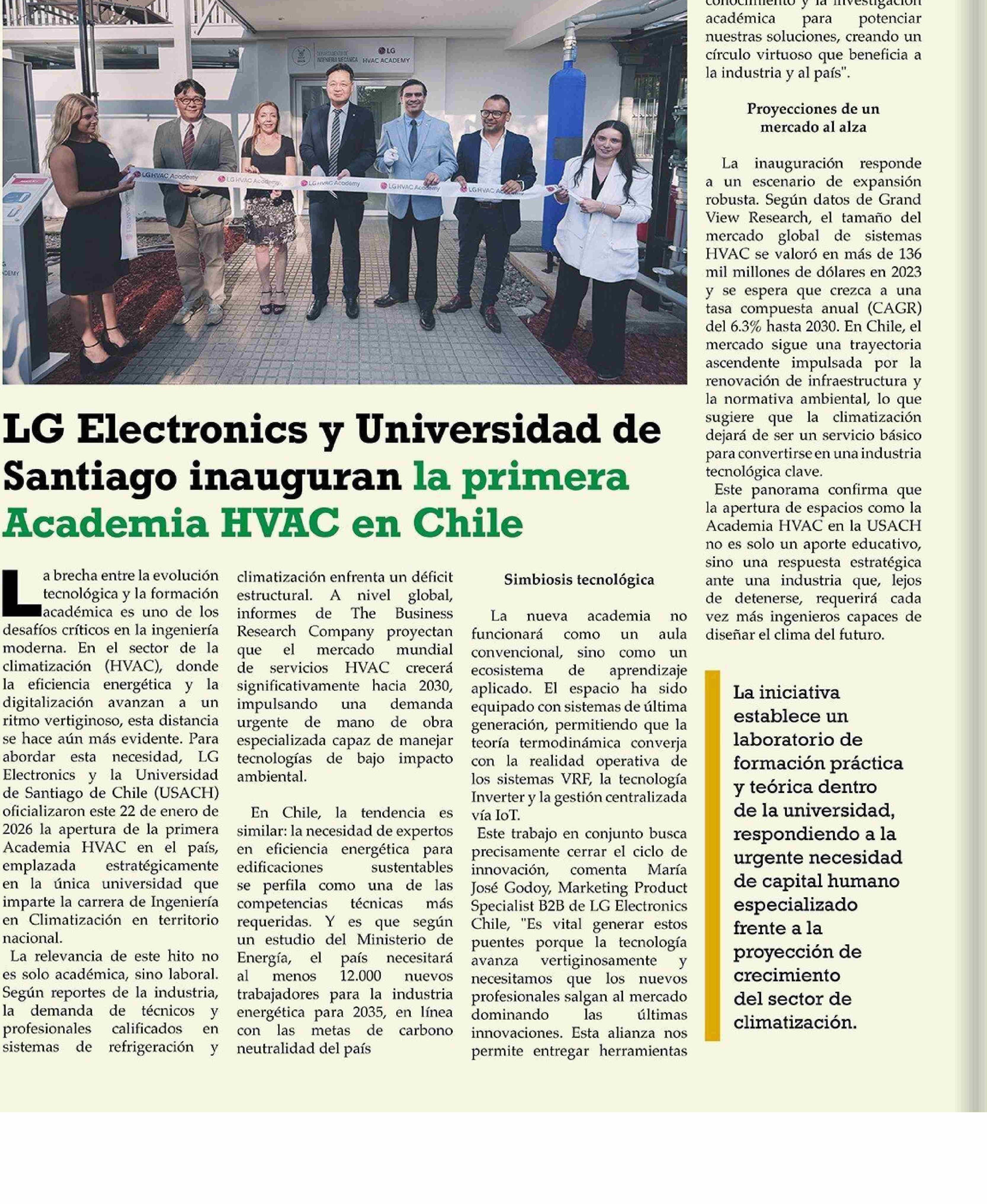 LG Electronics y Universidad de Santiago inauguran la primera Academia HVAC en Chile 28-01-2026 El Heraldo Austral |