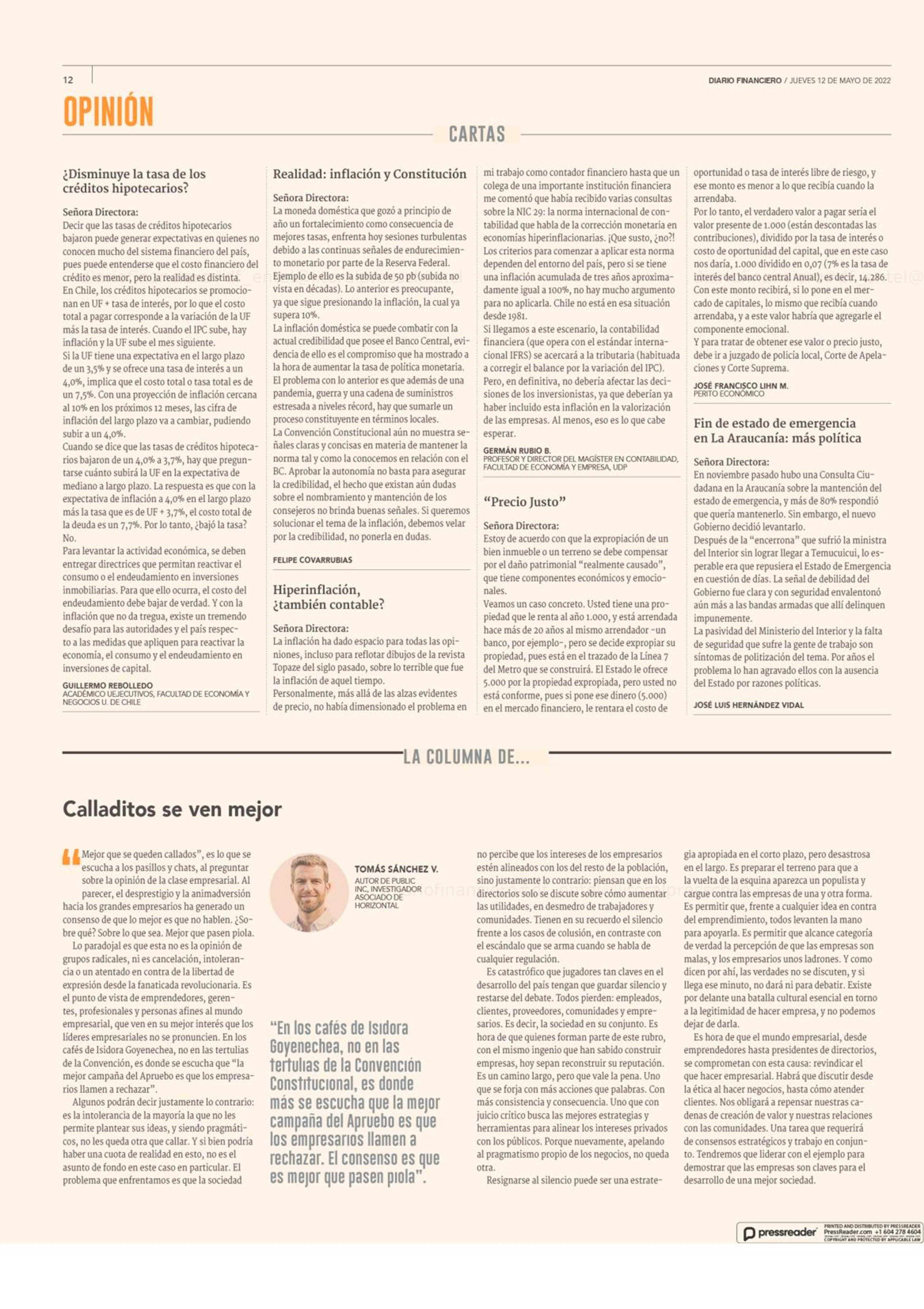 | Fecha: | 12-05-2022 | Sector: | Opinión - Cartas | Región: | Región Metropolitana de Santiago |