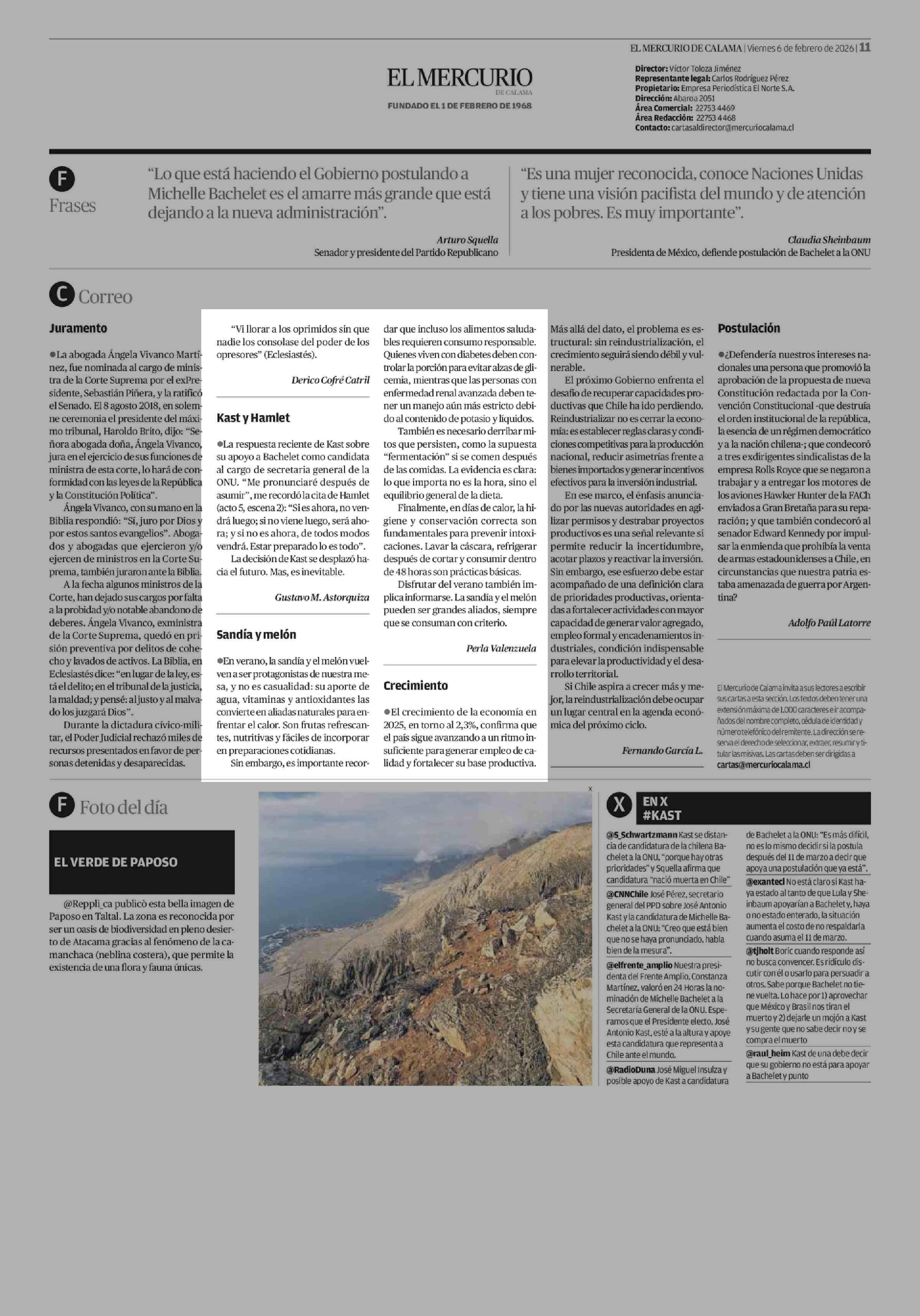 Cartas: Sandía y melón 06-02-2026 El Mercurio de Calama |